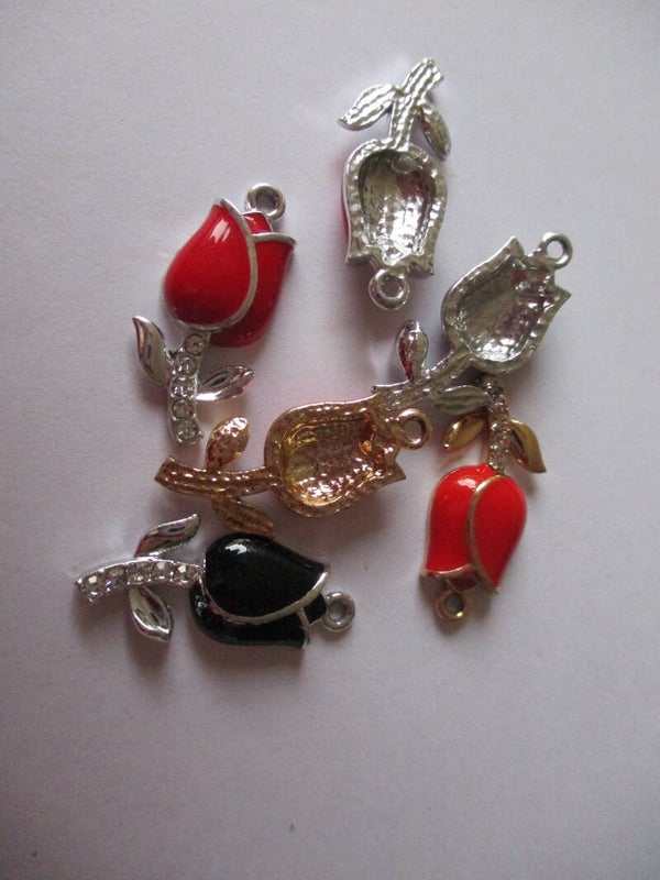 Een leuke hanger in de vorm van een tulpje. De bedel is 24 x 10 mm groot en gemaakt van nikkelvrij materiaal. Je kunt kiezen uit een zwarte tulp op zilverkleurige ondergrond of een rode tulp met een goud of zilverkleurige ondergrond.