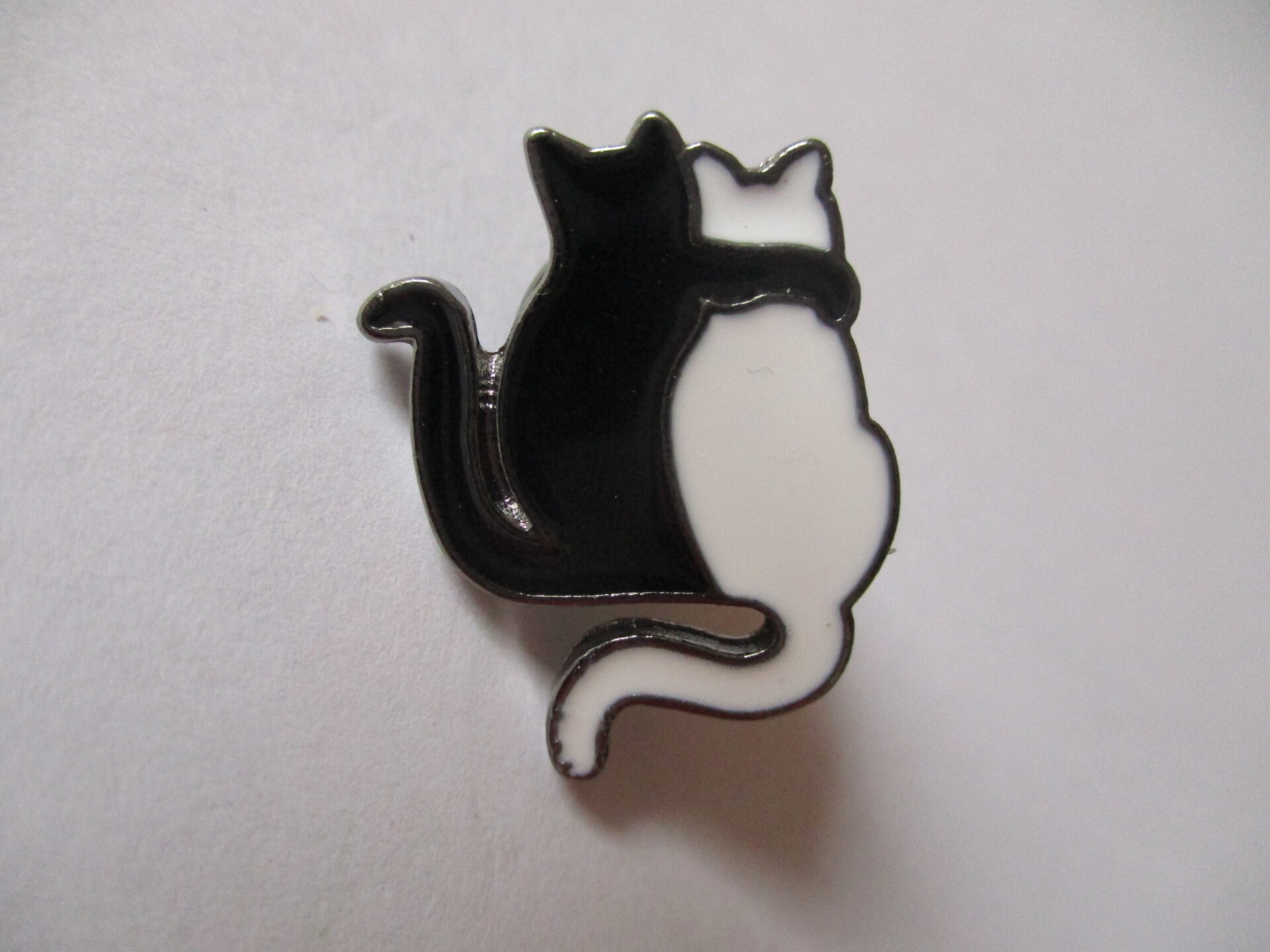 Een leuke kleine broche van een zwarte en een witte kat die elkaar stevig omarmen. Het maakt een lieve indruk om dit op uw kleding te spelden. De speld is 2 x 1,7 cm groot en is gemaakt van nikkelvrij materiaal.