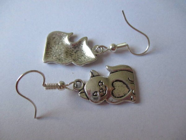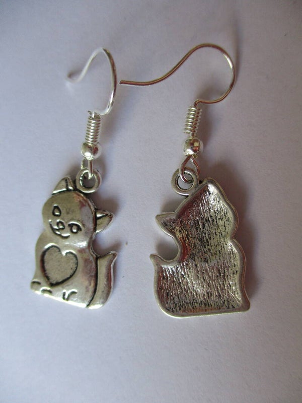 Leuke oorbellen met een poes met een hartje in het midden. De hangers zijn 2,2 cm groot en gemaakt van nikkelvrij materiaal.