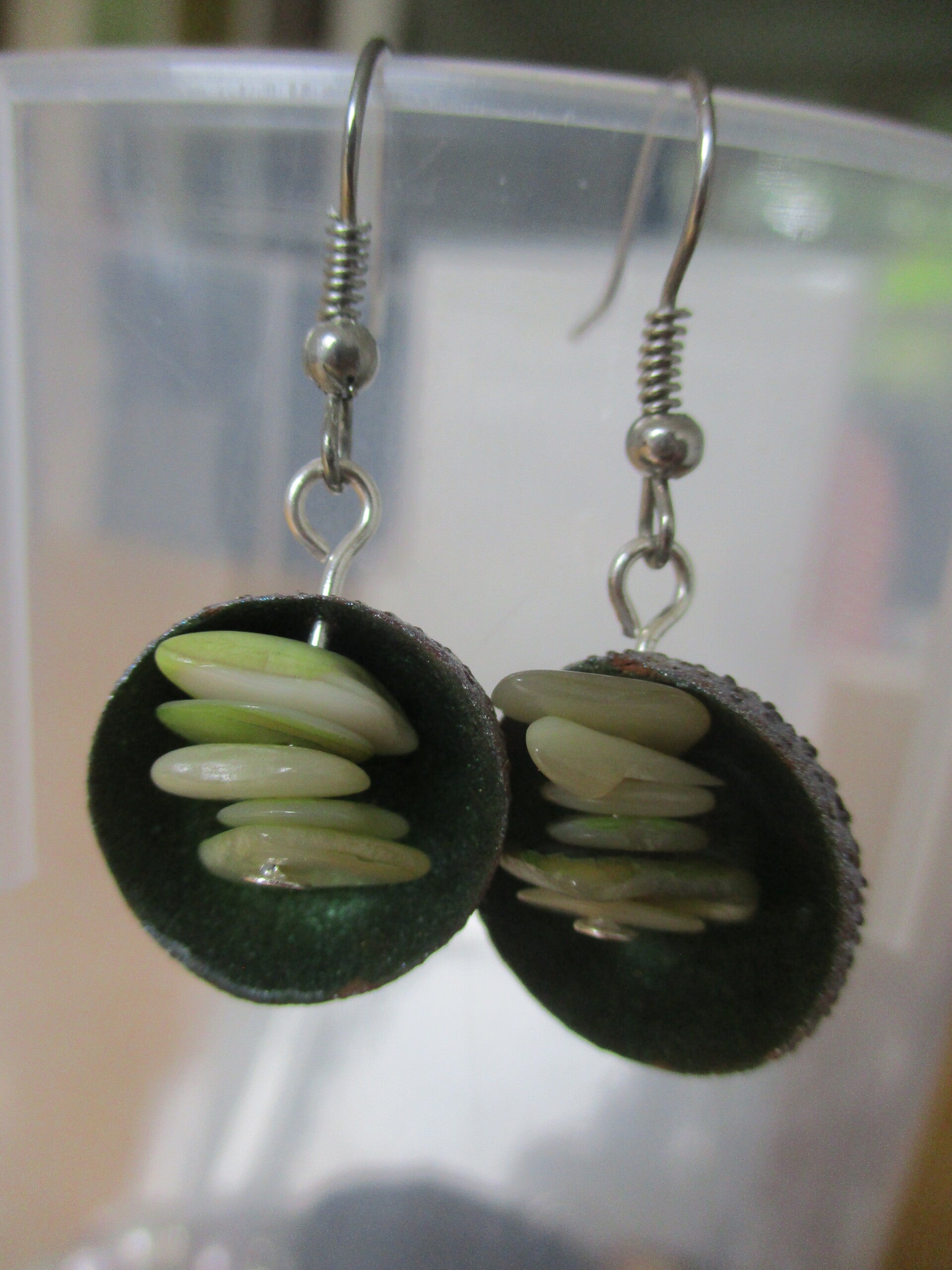 Oorbellen met eikelkapjes en groene schelpjes 20200