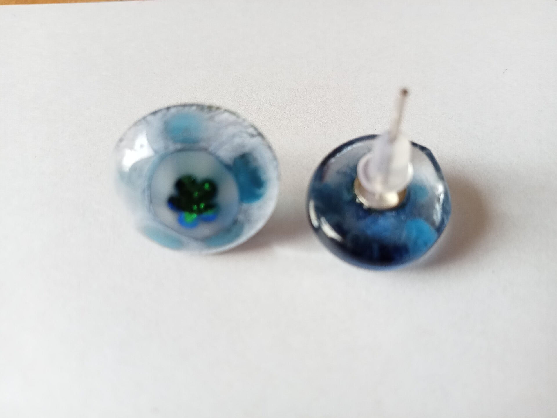 Ronde transparante oorstekers met blauw en bloemmotief 55696o