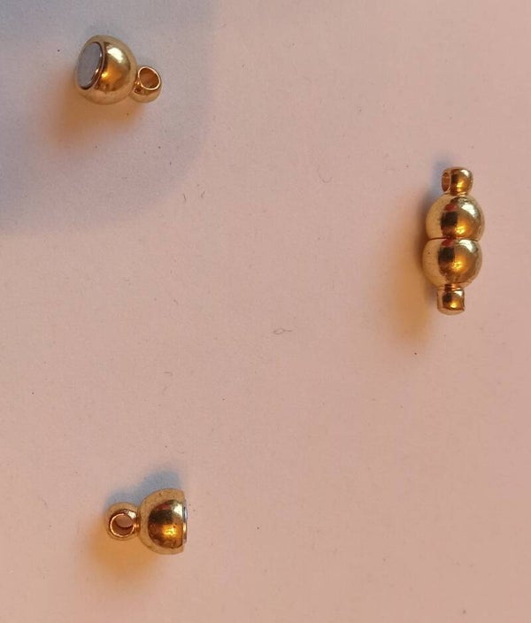 Mooi afgewerkt magneetslot, perfect passend bij een sieraad met ronde kralen. Het gesloten slotje is 9 x 6 mm exclusief oogjes.