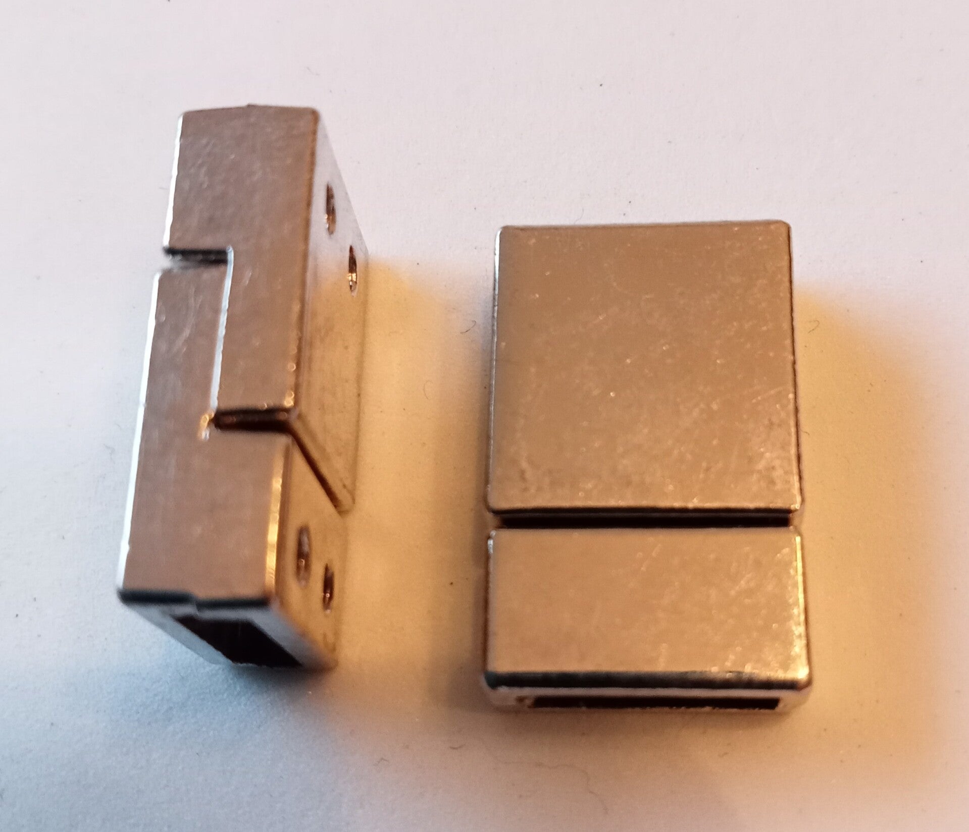 Een heel strak magneetslot geschikt voor een leren band bijvoorbeeld. Het slot is 21x13 mm groot en geschikt voor een band van 10x3 mm. Het is gemaakt van nikkelvrij metaal.