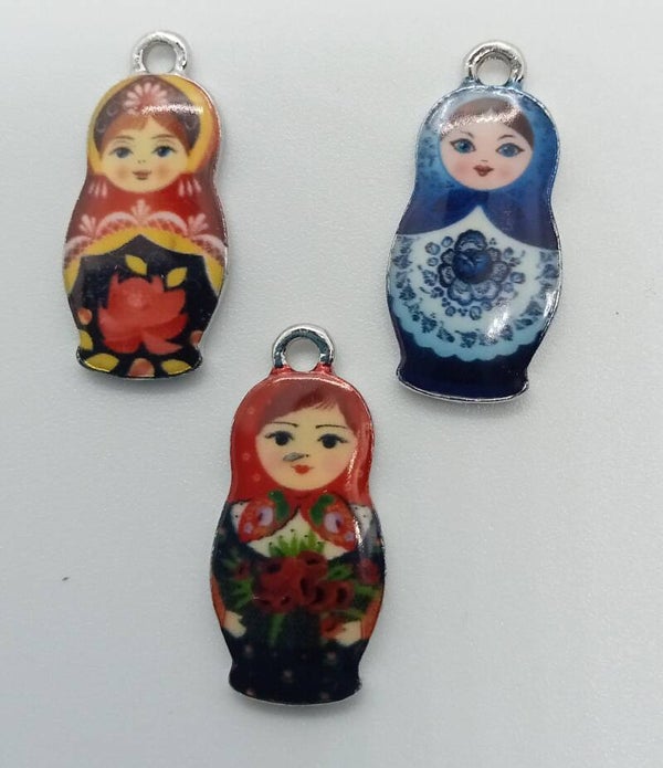 Leuk gekleurde hangers in de vorm van Matroesjka poppetjes. De hangertjes zijn 22 x 10 mm groot en gemaakt van nikkelvrij metaal met een toplaag van epoxy (kunsthars) aan de voorkant.
