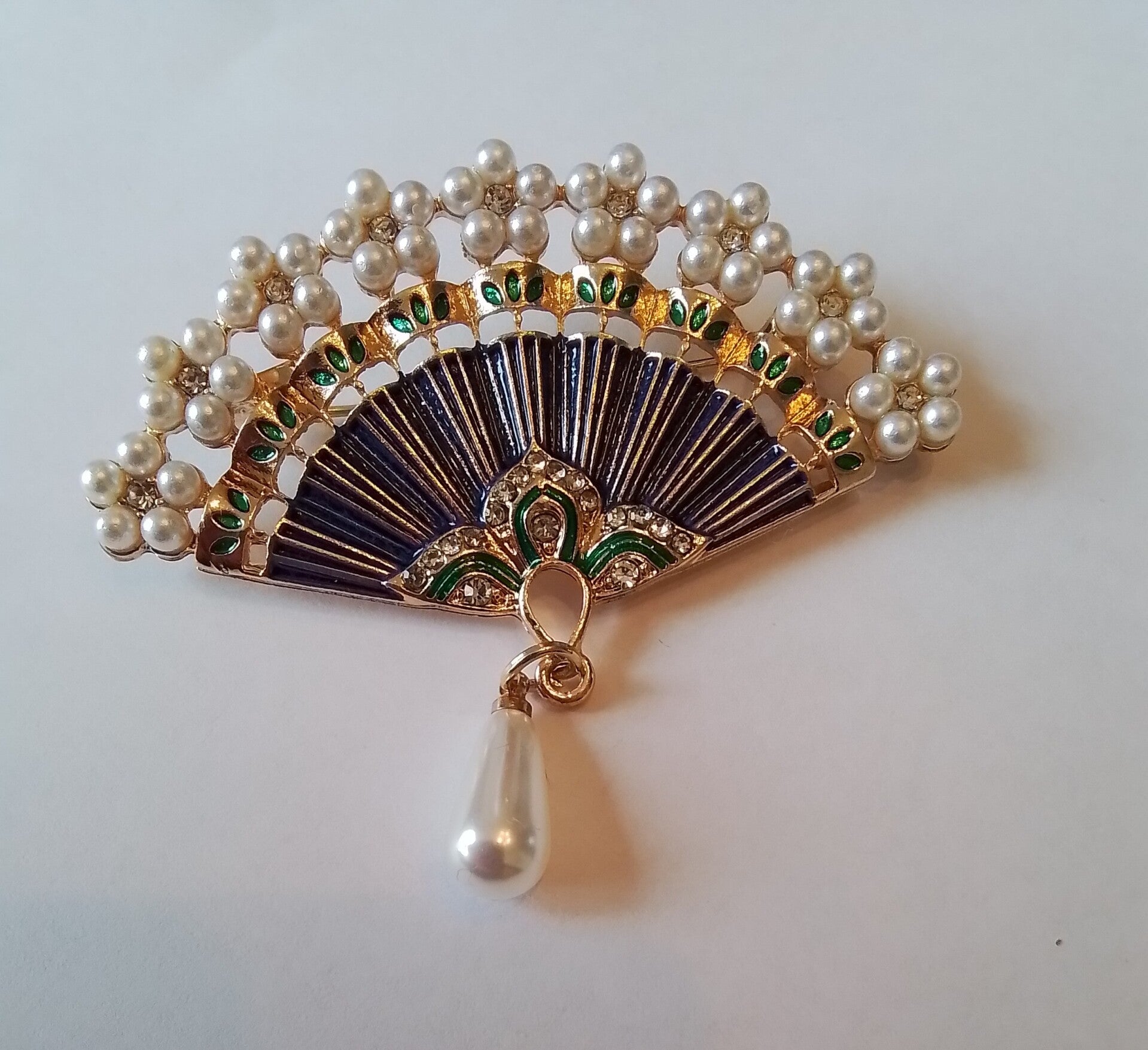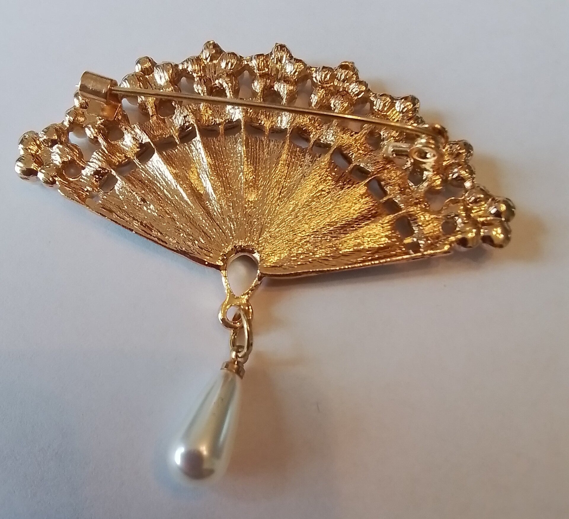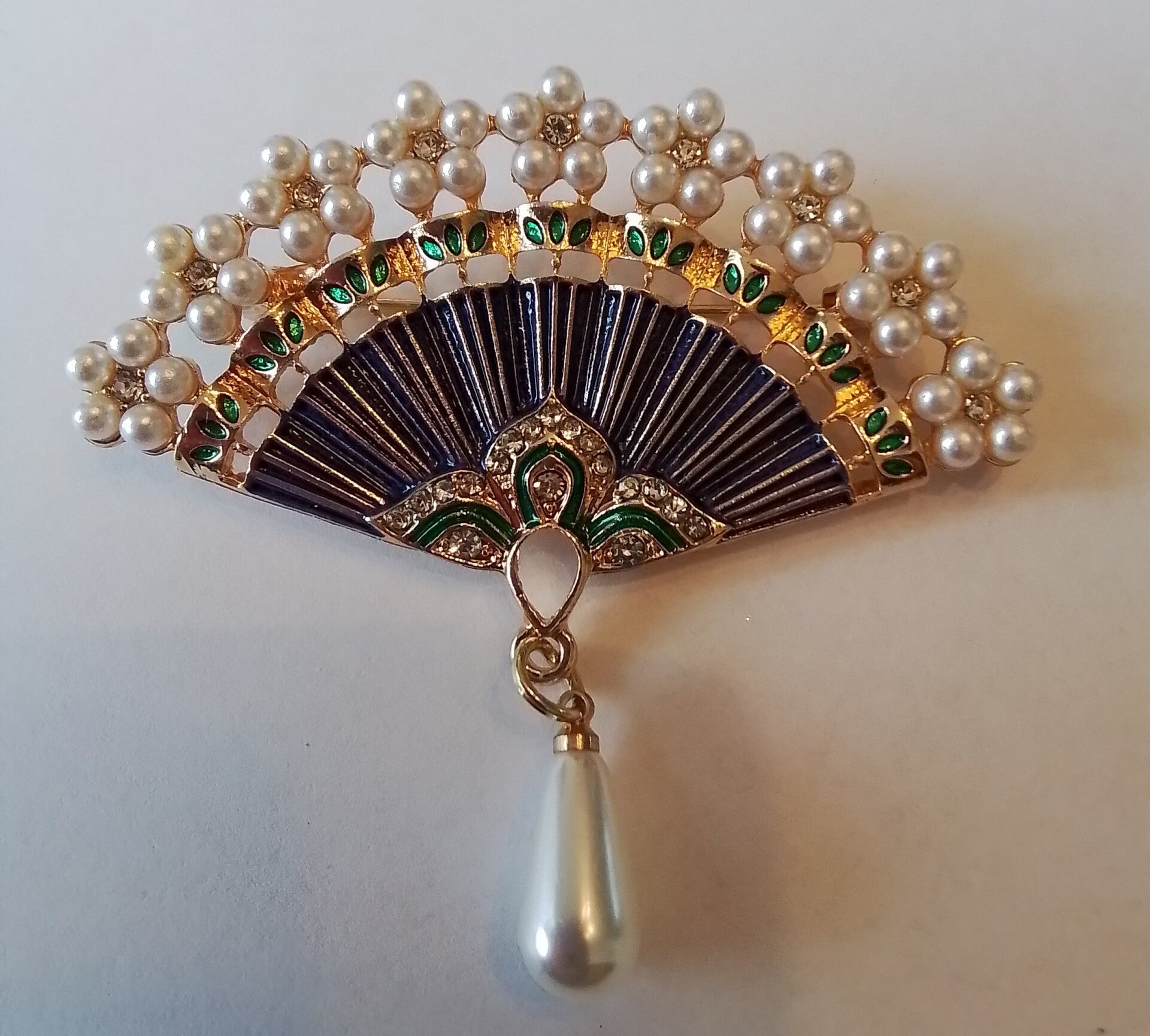 Broche waaier met parels en stras 91211