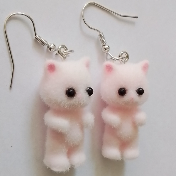 Fluffy poesjes oorbellen roze of wit 20274
