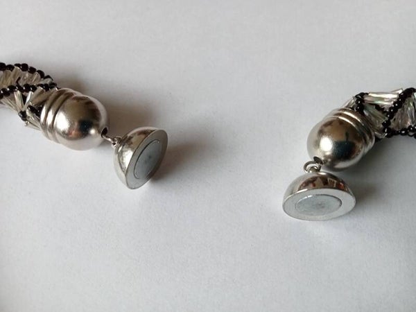 De ketting heeft standaard een sterk magneetslot, heel handig voor mensen met een beperkte handfunctie. Een magneetsluiting schuif je het beste van elkaar, omdat eraan trekken eerder de ketting kapot maakt.