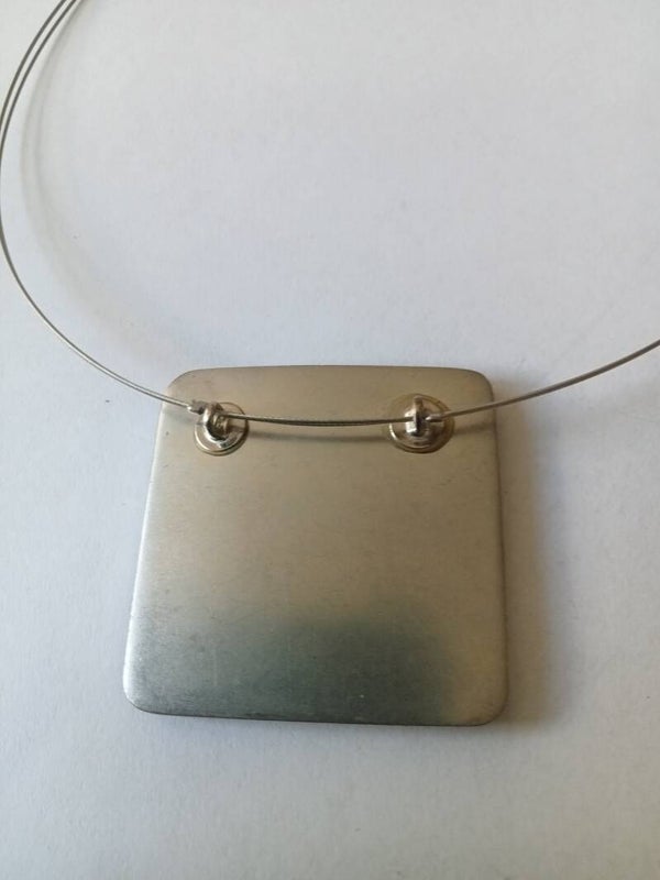 De hanger is gemaakt van rvs met erop een laagje groene epoxy.