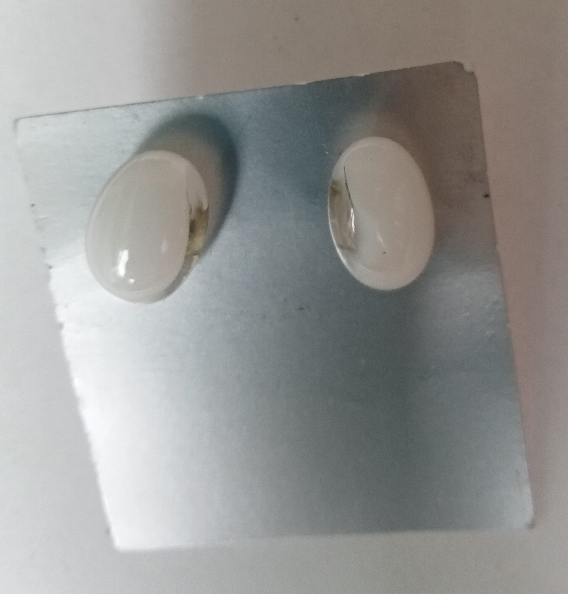 Mooie strakke witte oorknoppen gemaakt van wit en transparant glas. Bij beide oorknoppen is een stukje van de zijkant het transparante glas te zien. De oorknoppen zijn 14 x 9 mm groot. De bail is gemaakt van nikkelvrij metaal gemaakt. De stoppertjes van kunststof.