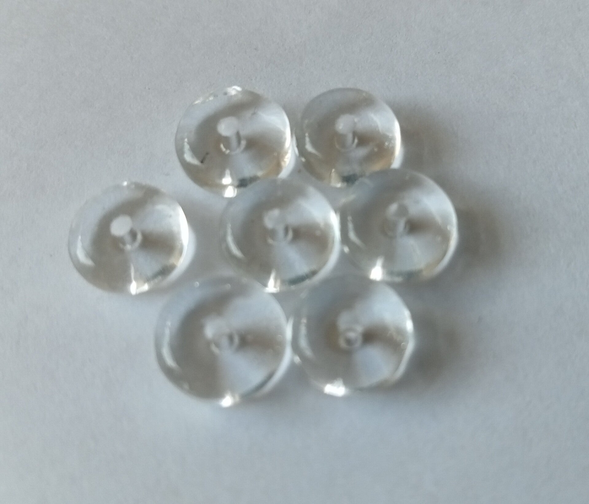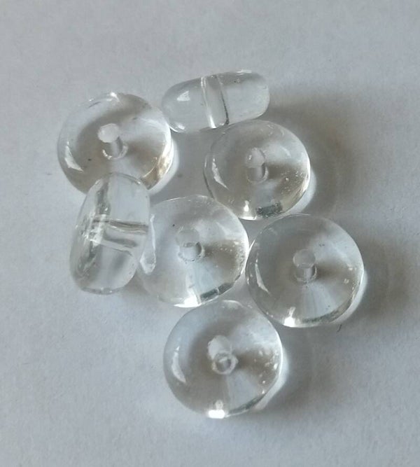 Schijfvormige, platte ronde kralen, 8x4 groot en volledig transparant. Een hele mooie tussenkraal bij kralen die mogen opvallen. Iets dat deze kralen juist niet doen.