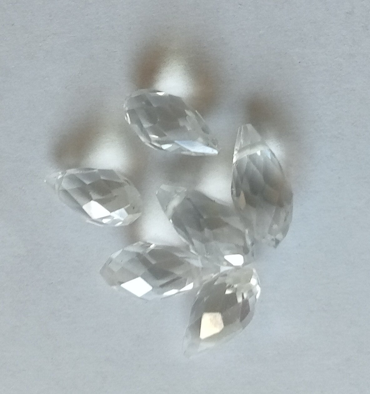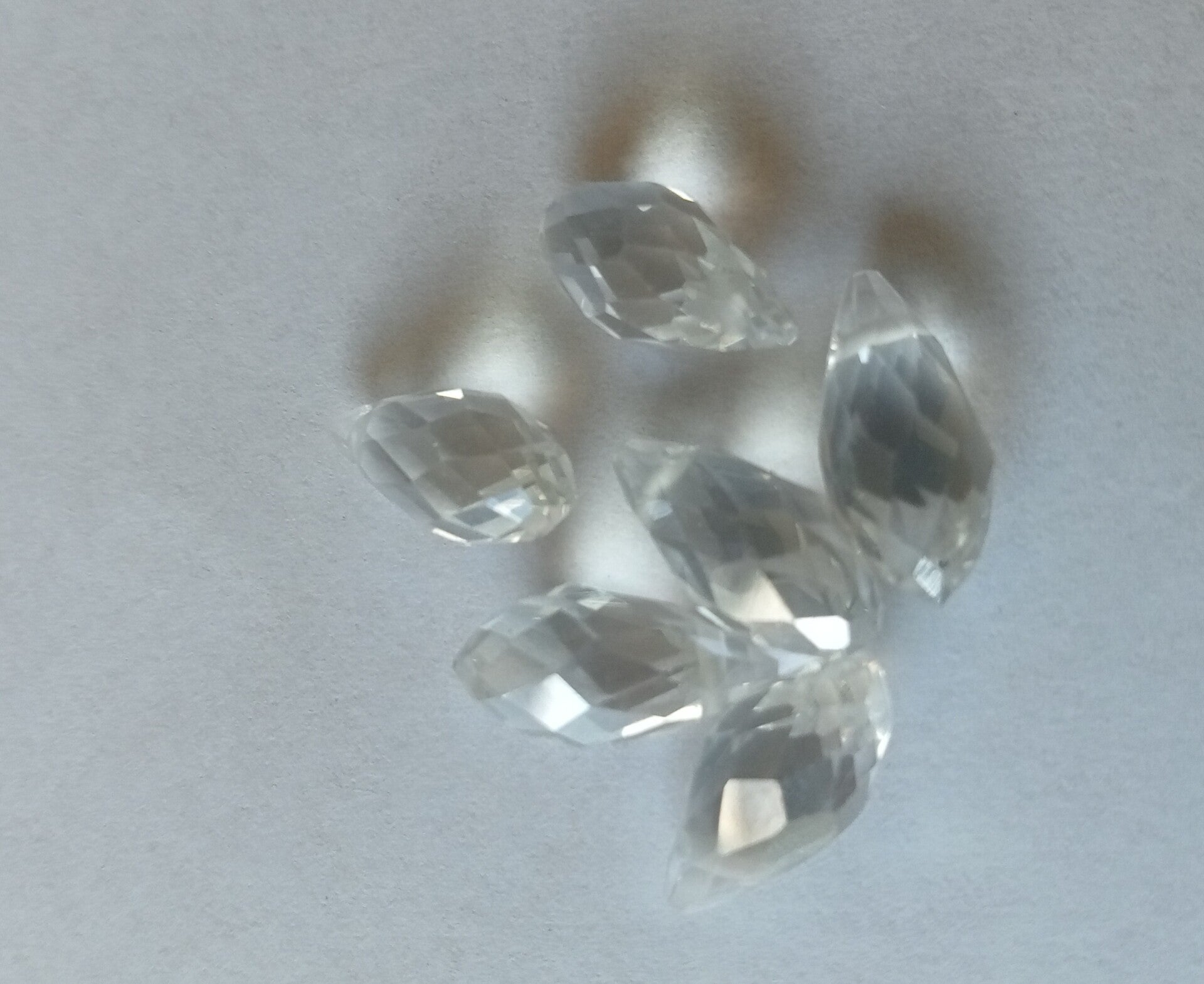 Glaskralen in druppelvorm met een prachtige schittering. De kralen zijn transparant en 12x6 mm groot. Een opvallende kraal in uw zelfgemaakte sieraad.