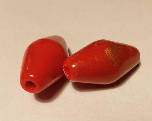 Bijzondere rode kunststof kralen in 2 varianten.
