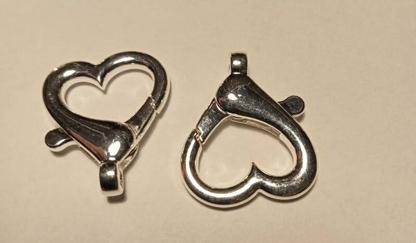 Een zilverkleurige sluiting in de vorm van een hart. De sluiting is gemaakt van nikkelvrij metaal en 26x22 mm groot.
