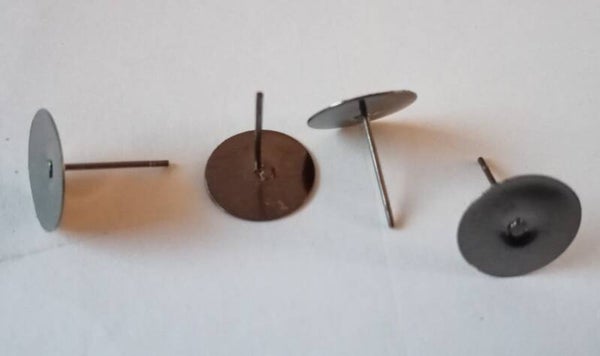 Roestvrijstalen (RVS of stainless steel) oorsteker met een plakvlak van 12 mm groot. Met een mooie cabochon erop maakt u simpel uw eigen unieke oorbellen. We verkopen de oorstekers met kunststof oorbelstoppers.