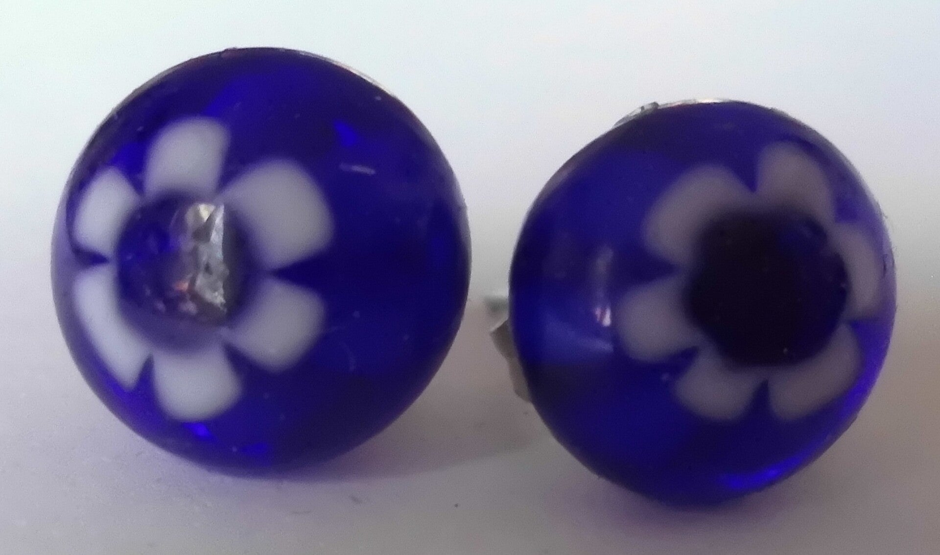 Mooie blauwe oorknopjes met een witte bloem. De oorstekers zijn gemaakt van nikkel en loodvrij metaal. De oorknopjes zijn erg handig voor mensen die liever geen oorhangers dragen of die vanwege hun werk geen lange oorbellen kunnen dragen.