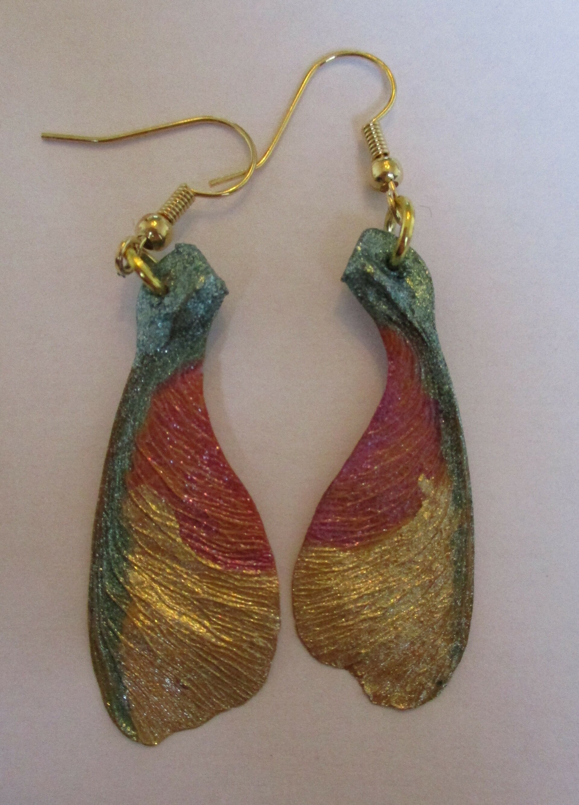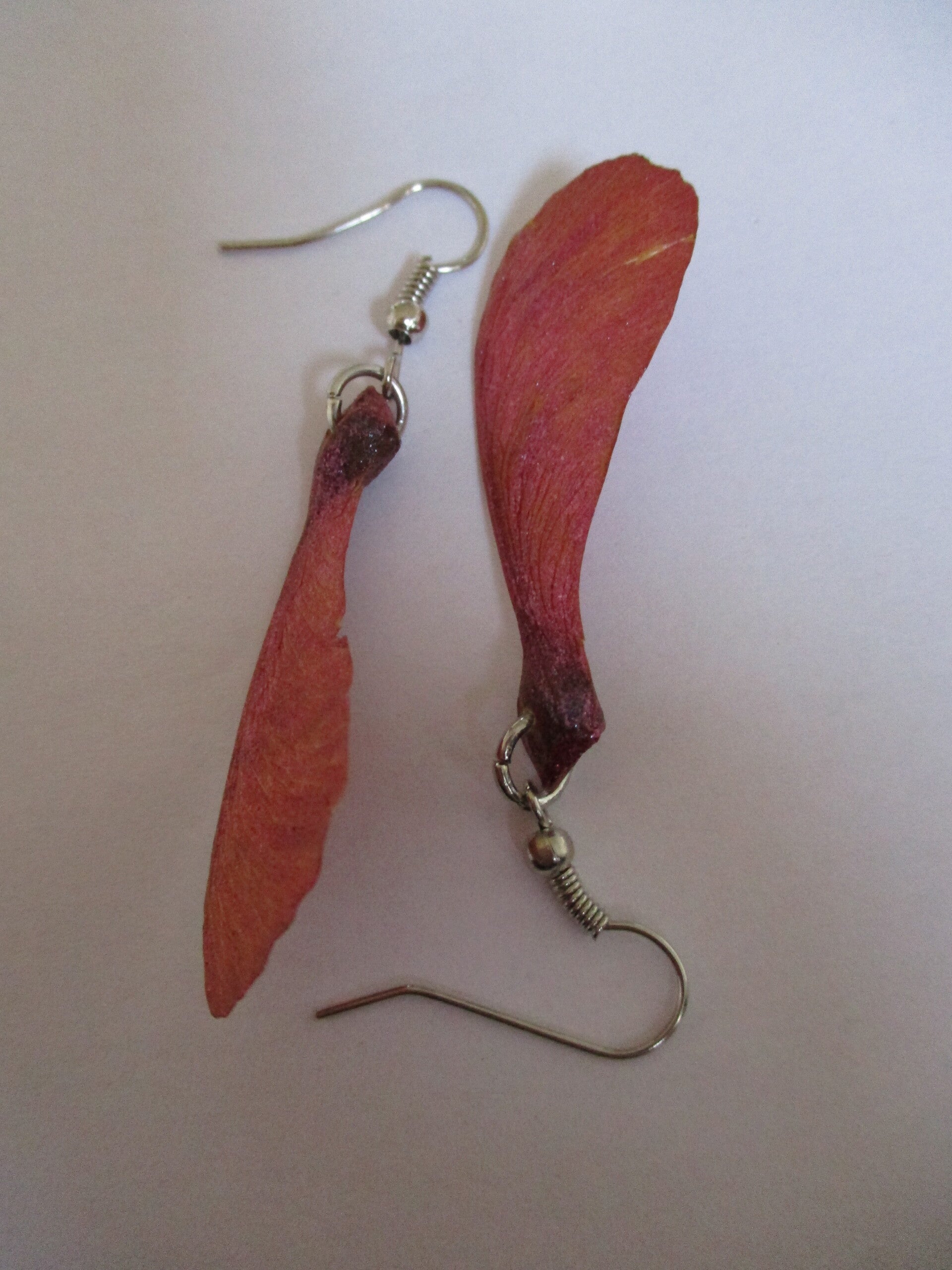 Leuke, unieke oorbellen gemaakt van echte esdoornvleugeltjes. De vleugeltjes zijn gelakt en u kunt zelf kiezen voor haakjes of clips die gemaakt zijn van nikkelvrij materiaal. De vleugeltjes op de foto zijn een voorbeeld. De kleuren verschillen per paar oorbellen.