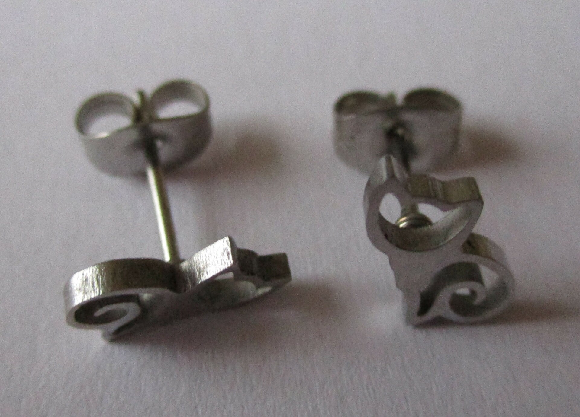 Roestvrij stalen modern, strak en open vormgegeven oorstekers in de vorm van een poes. De poezen zijn ongeveer 9 x 5 mm groot. De oorstekers zijn veilig te dragen door mensen met een metaal allergie of mensen die net gaatjes hebben laten prikken.