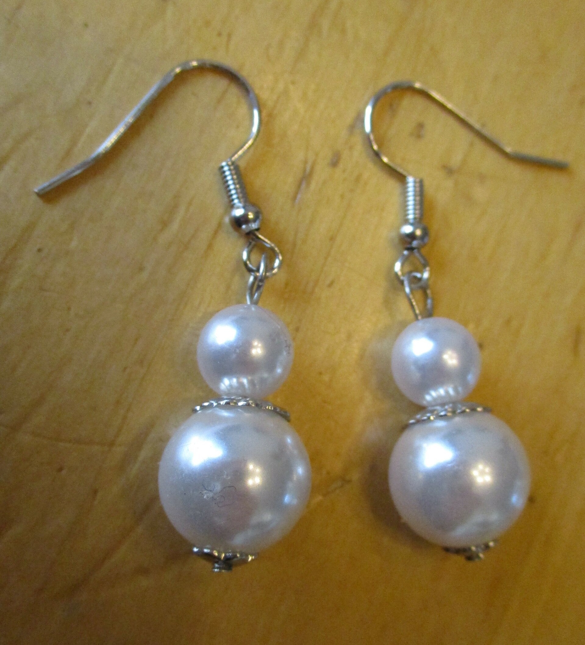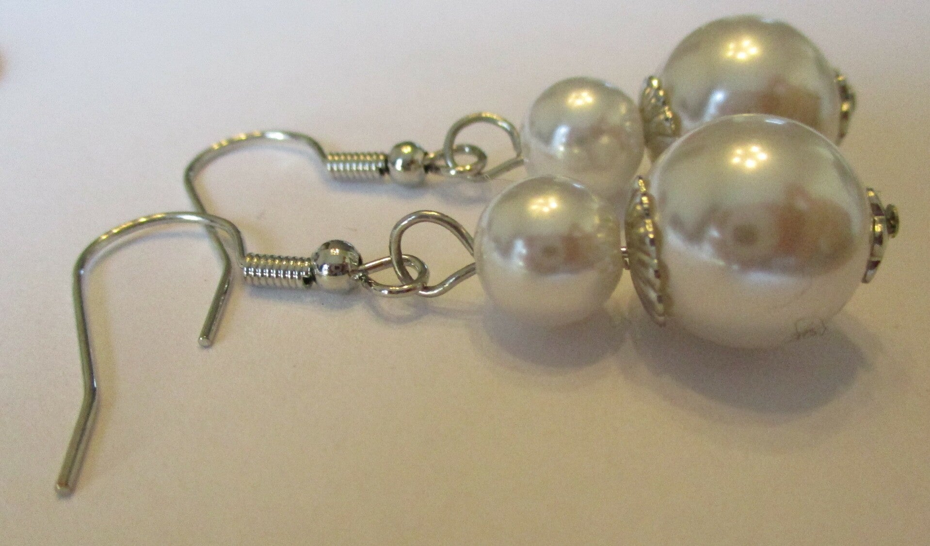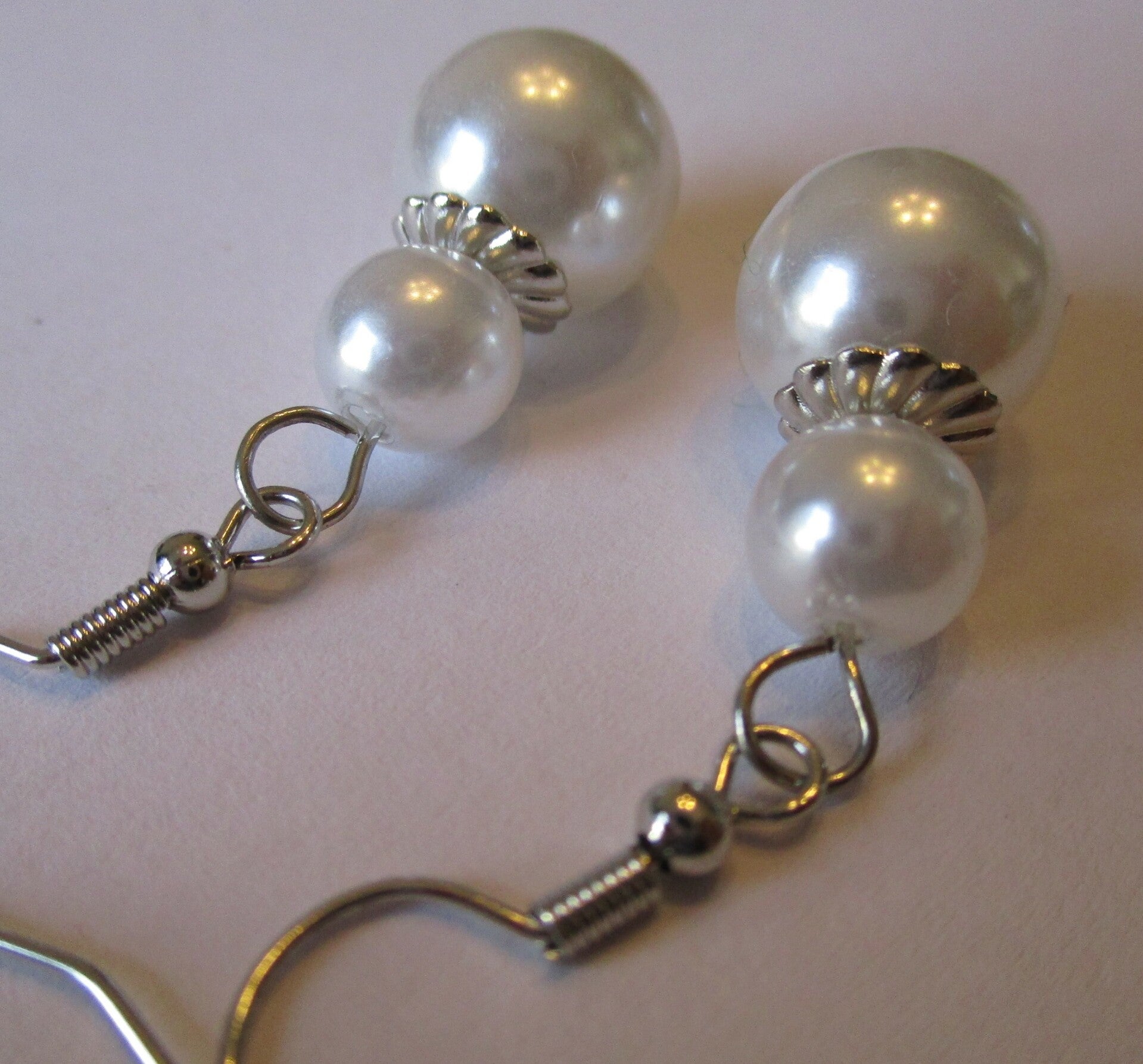 Leuke oorbellen gemaakt van twee verschillende formaten witte parels met een klein kralenkapje ertussen. Het lijkt net een klein sneeuwpoppetje. De haakjes zijn gemaakt van nikkelvrij materiaal, maar kunnen bij bestelling worden verwisseld.