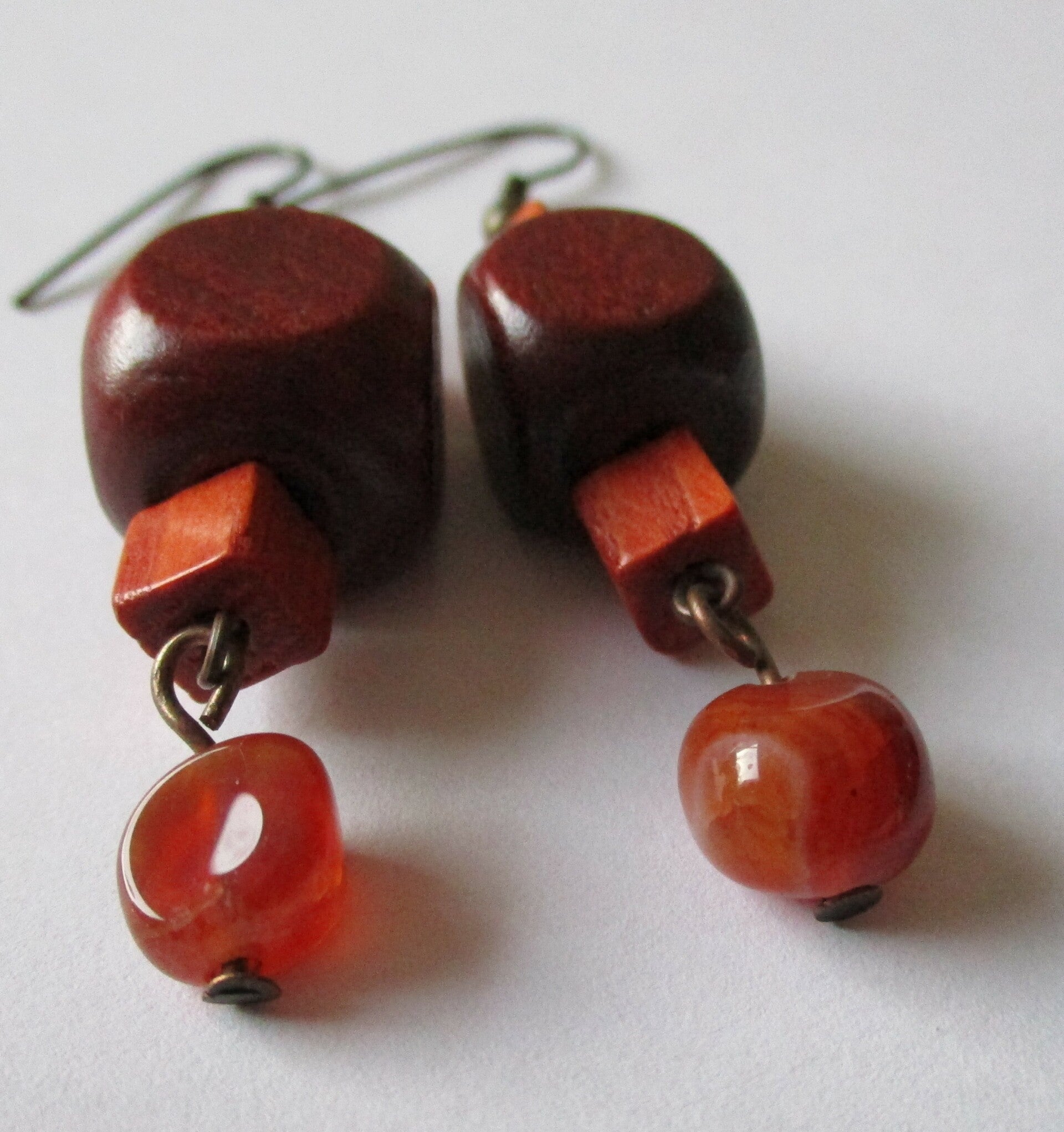 Oorbellen met hout en agaat 20227