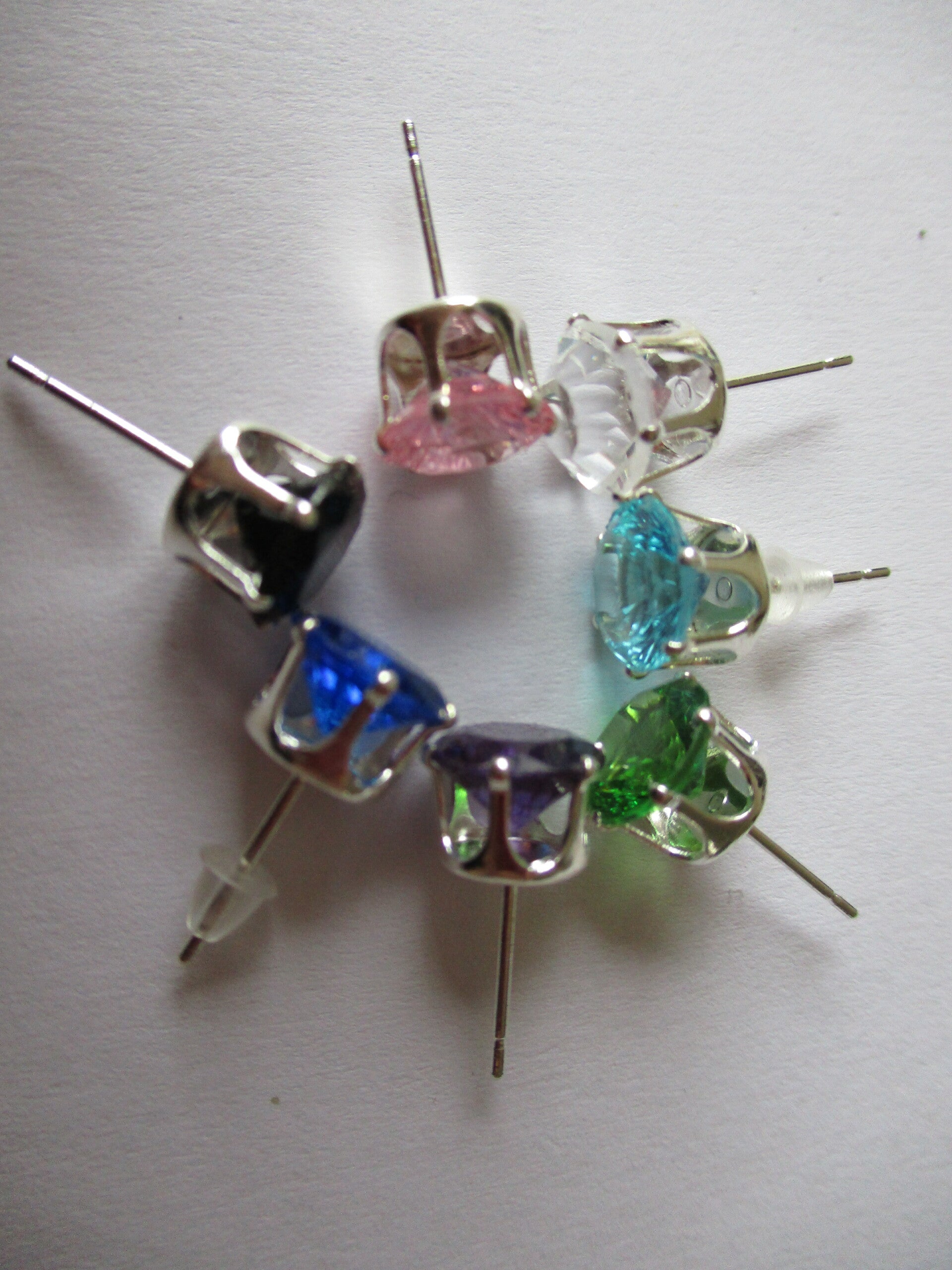 Mooie echt zilveren oorknoppen met een gekleurde stras steen. De stenen zijn ongeveer 10 mm in doorsnede, de setting is ongeveer 6 mm hoog. De slotjes die erbij geleverd worden zijn van kunststof. De steentjes hebben verschillende kleuren. Geef bij uw bestelling door welke kleur u wilt ontvangen.