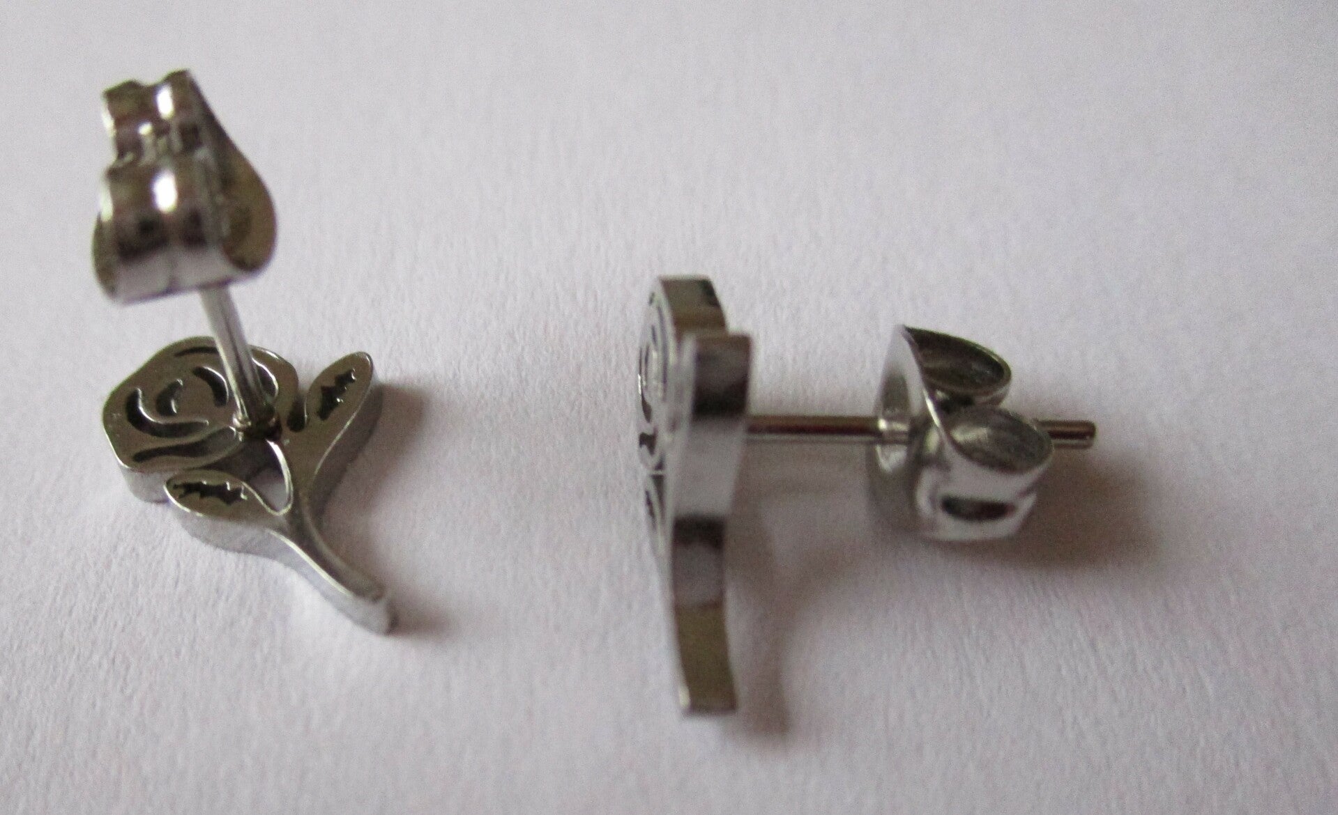 Mooi strak vorm gegeven Roestvrij stalen (RVS of stainless steel) oorstekers. Ze zijn veilig te dragen door mensen met een metaalallergie. De roosjes zijn ongeveer 1,2 x 1 cm of 10 x 6 mm groot.