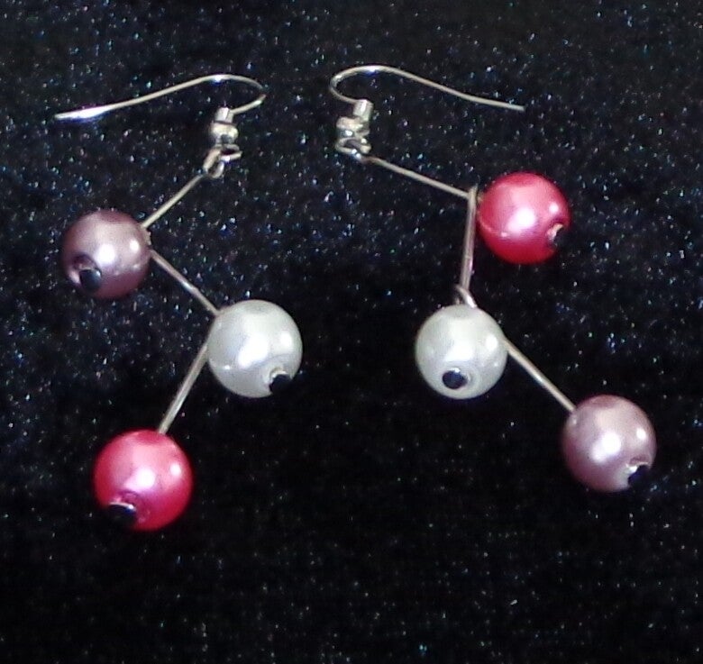 3 kleurige parels in een zigzagpatroon geven het een luxe uitstraling. Het zijn ook unieke sieraden, omdat er maar 2 sets van zijn gemaakt. De hele set bestaat uit een ketting, armband en oorbellen en kost € 30,00. De ketting los kost € 20,00, de armband € 10,00, de oorbellen € 7,50. Bij een setje van 2 van de losse sieraden krijgt u € 5,00 korting.