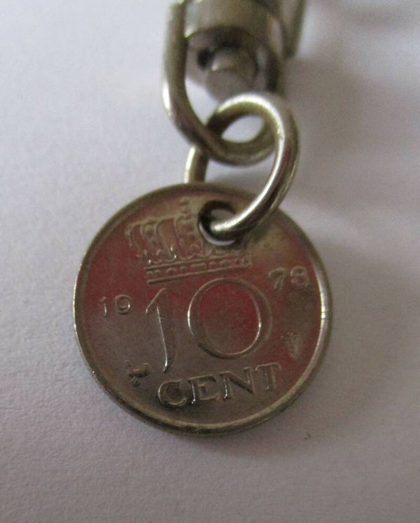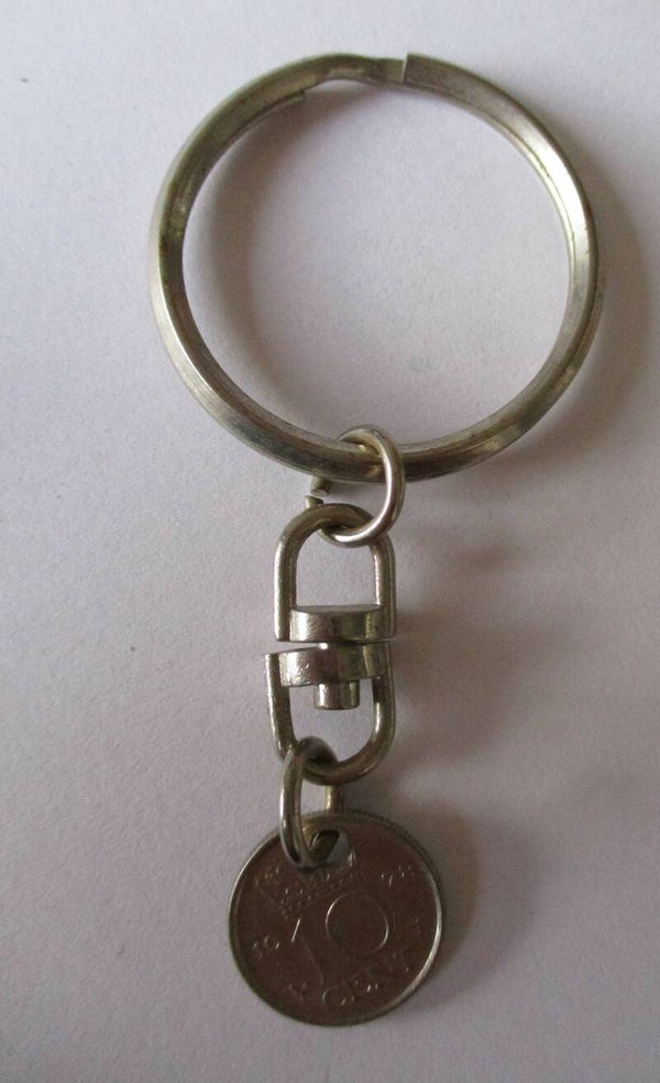 Een beetje nostalgie is terug te vinden in deze sleutelhanger. Een ouderwets dubbeltje aan een sleutelhanger. Leuk als cadeautje voor iemand die nog steeds graag in guldens rekent.