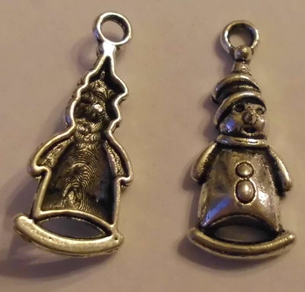 Leuke sneeuwpop bedel voor aan een bedelarmbandje, oorbellen of een vrolijke kinderketting. Het bedeltje is gemaakt van nikkelvrij materiaal en 2,2 x 1 cm groot.