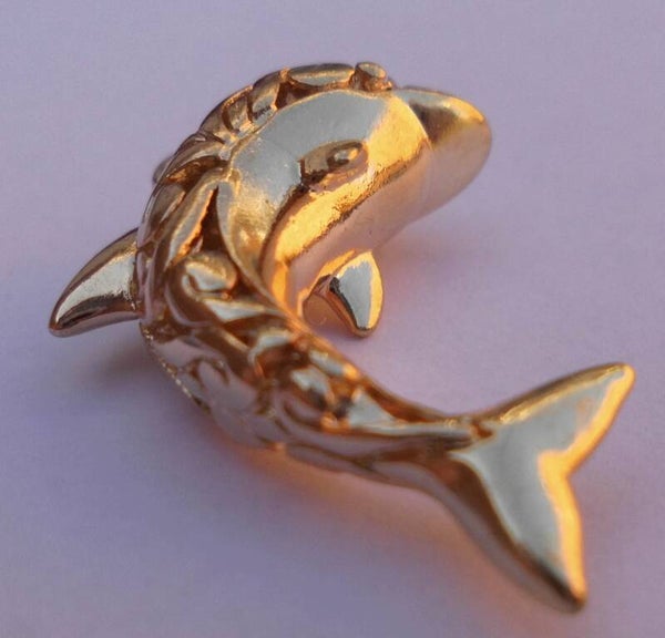 Een prachtig gevormde dolfijn gemaakt van roze goudkleurig metaal. De hanger is 30 x 20 mm groot en heeft een beetje opengewerkt lijf. Een mooie hanger voor een liefhebber van dolfijnen.