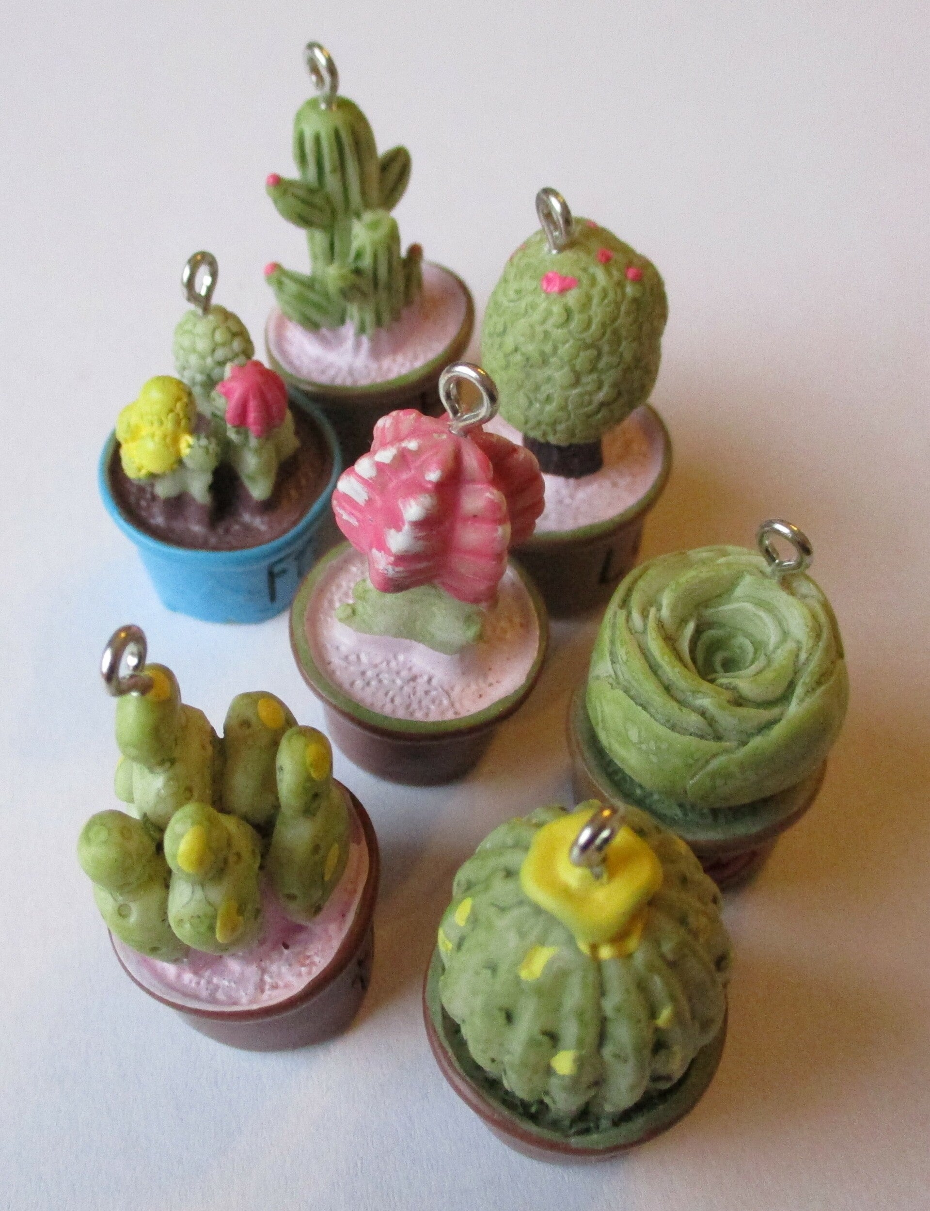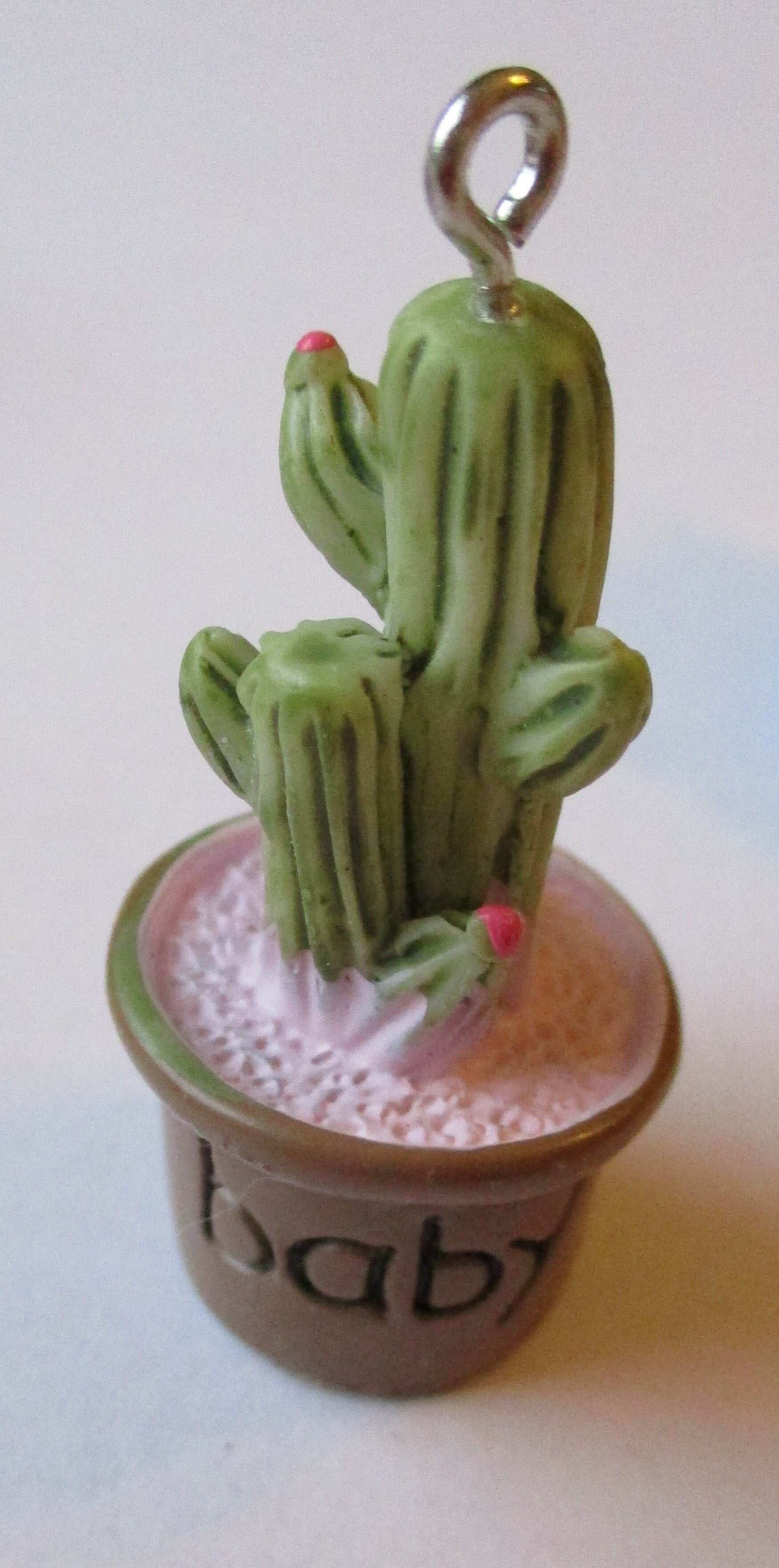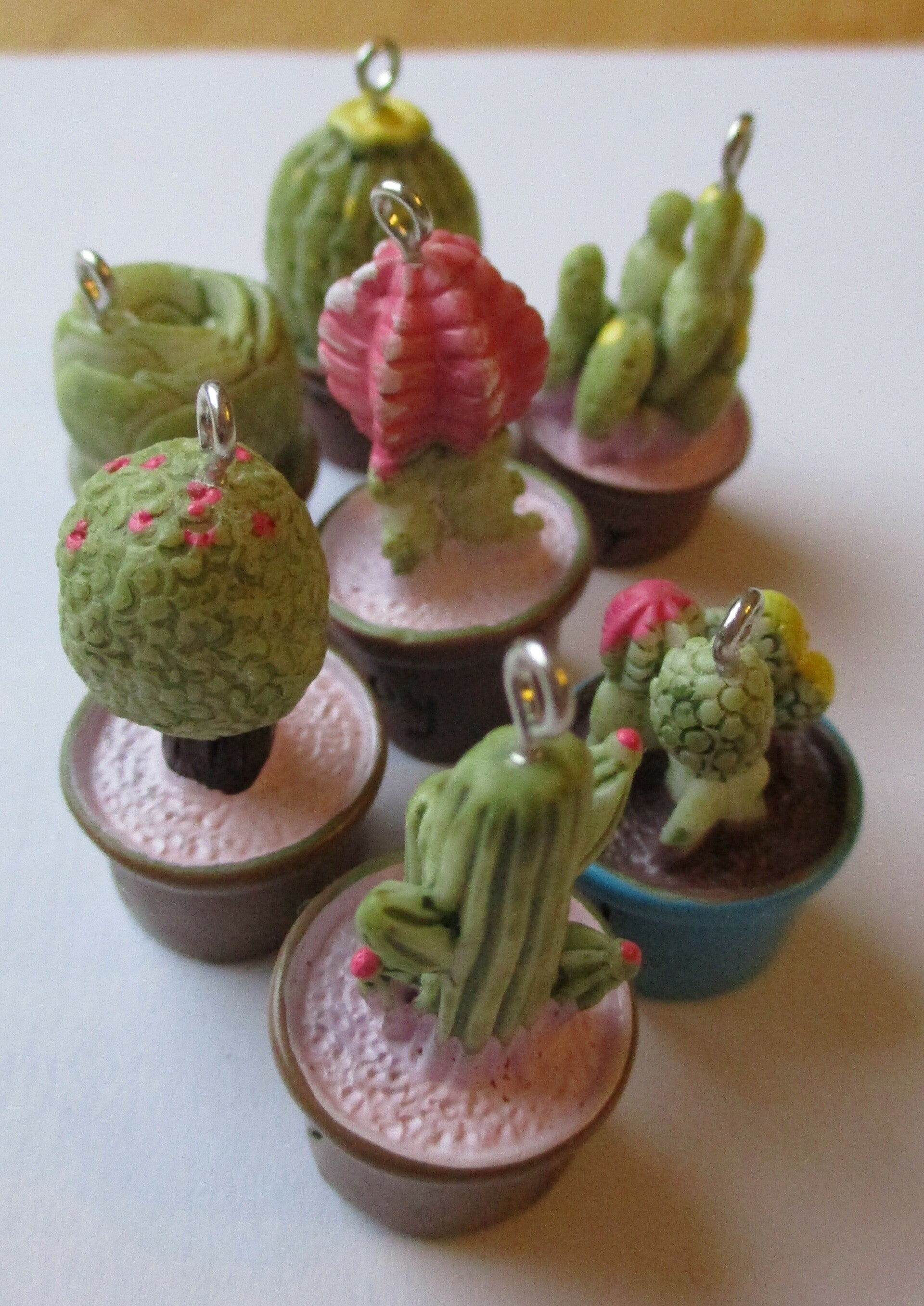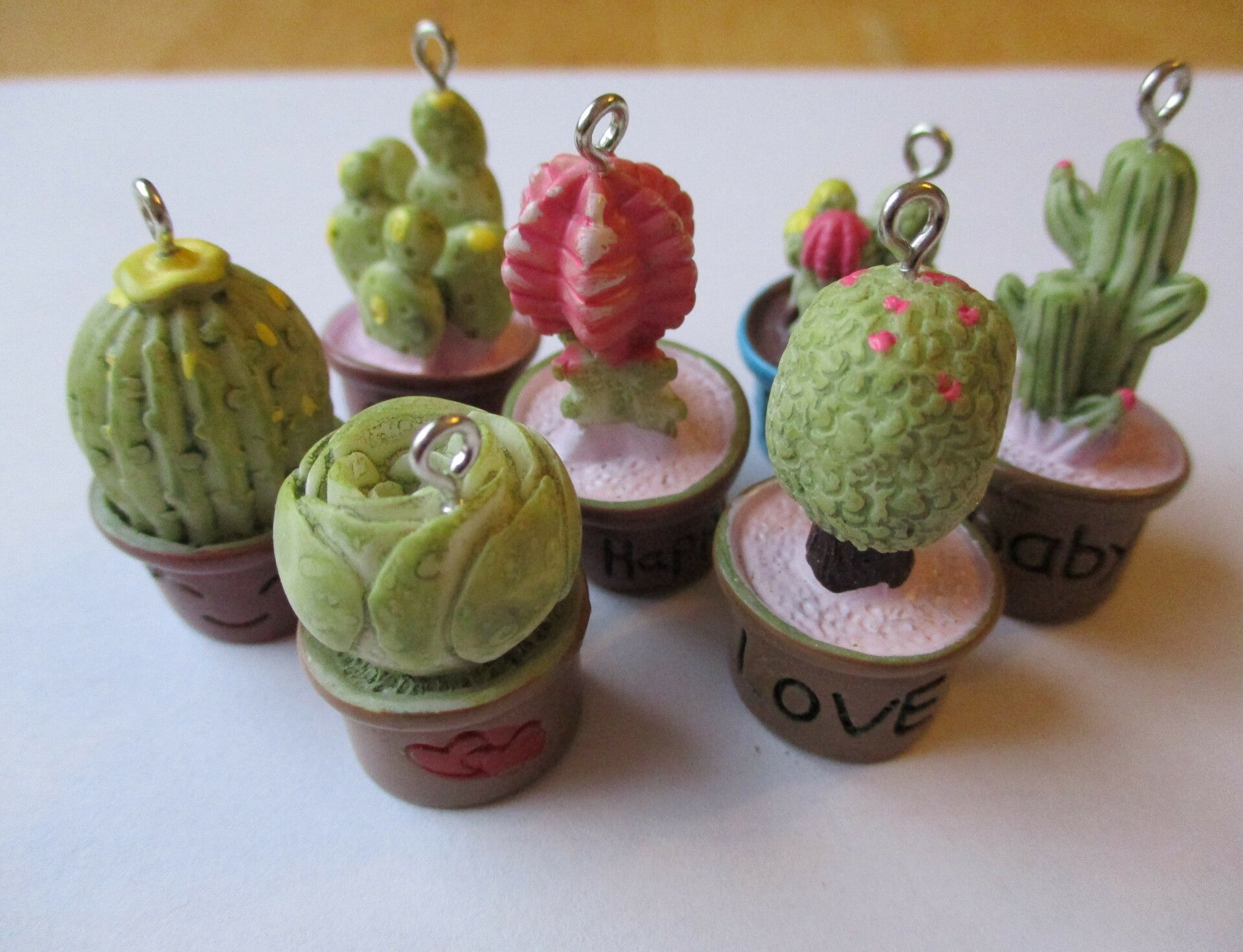 Vrolijke bedels gemaakt van polymeersteen in de vorm van verschillende cactussen. Erg leuk voor aan een sieraad voor iemand die van cactussen houdt. De bedels zijn tussen 3,5 en 4 cm hoog en ongeveer 1,5 cm breed. Op de potjes staat een woord of herkenningspunt. Per soort is er nog maar een zeer beperkte voorraad, maar u kunt wel een voorkeur doorgeven.