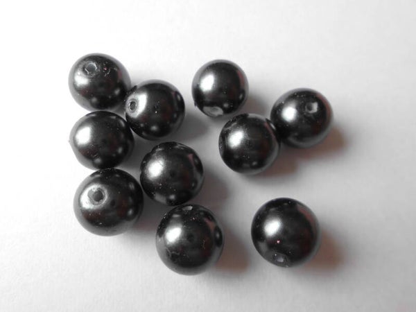 Ronde kralen van 10 mm groot in een licht glanzende donker antraciet kleur. De kralen zijn goed te combineren met gekleurde kralen.