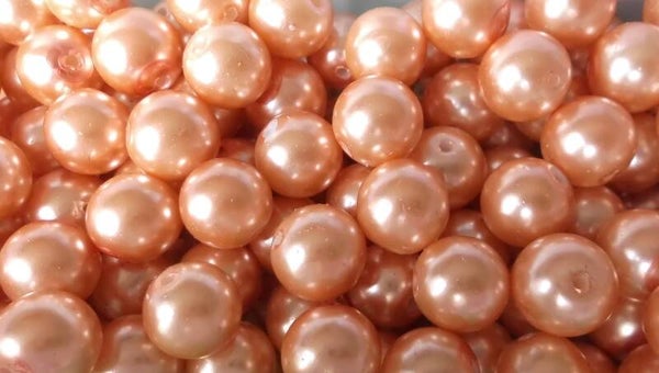 Ronde perzikroze kleurige glasparels van 10 mm groot. De kralen passen bij de trendy mode als perfecte pasteltint waarmee u een prachtig sieraad kunt maken dat bij uw nieuwe zomerse outfit past.