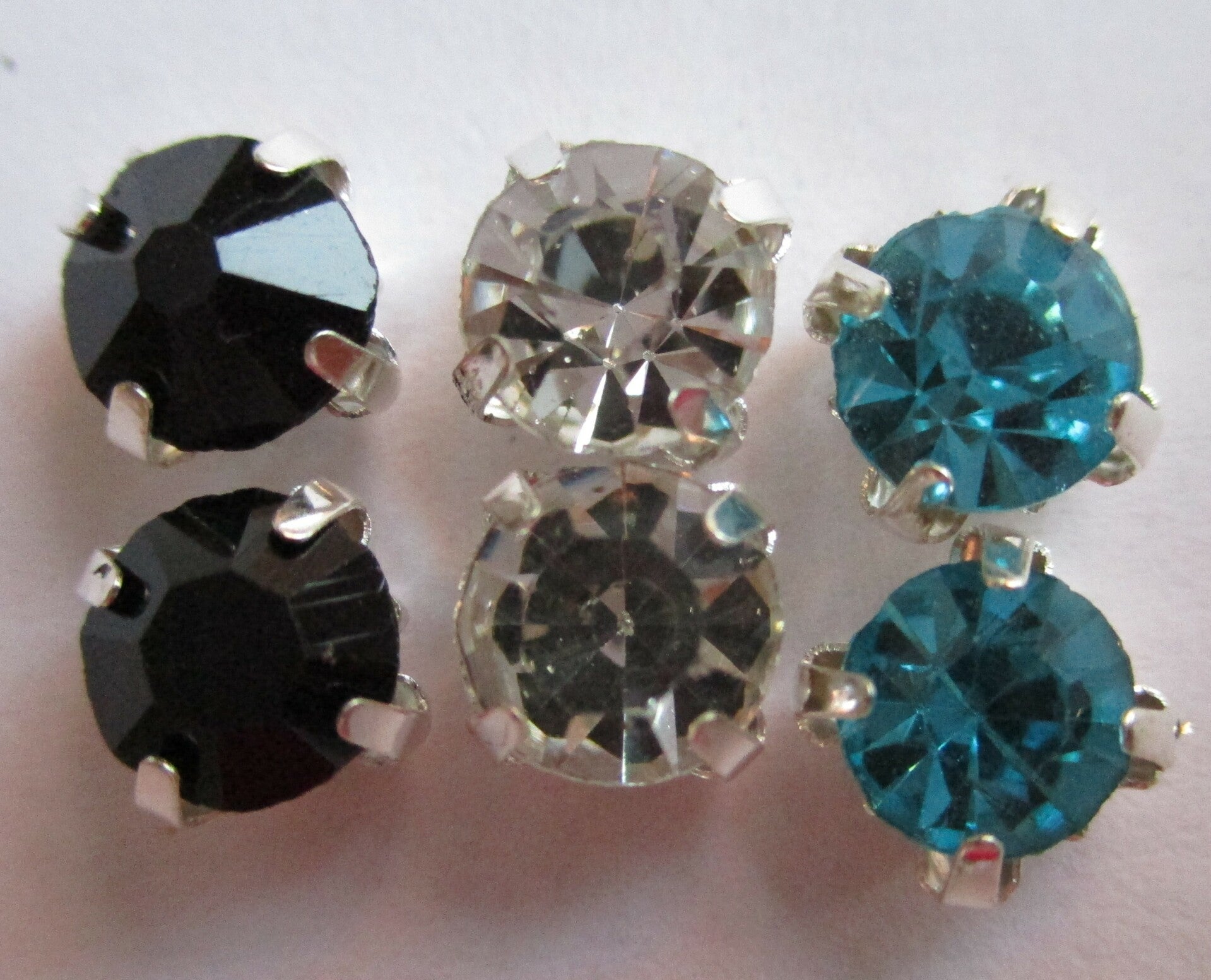 Bijzondere glaskristallen kralen van 6 mm groot. De kralen zitten in een zilverkleurige setting geklemd. In de setting zitten kruislings 4 gaten en in het midden nog een groter gat. Zo kunnen deze kralen gebruikt worden om te weven, maar ook om ze als studs te gebruiken om kleding mee te versieren. We hebben ze in 3 kleuren, zwart, turquoise en transparant. Geef bij uw bestelling de kleur van uw keuze door.