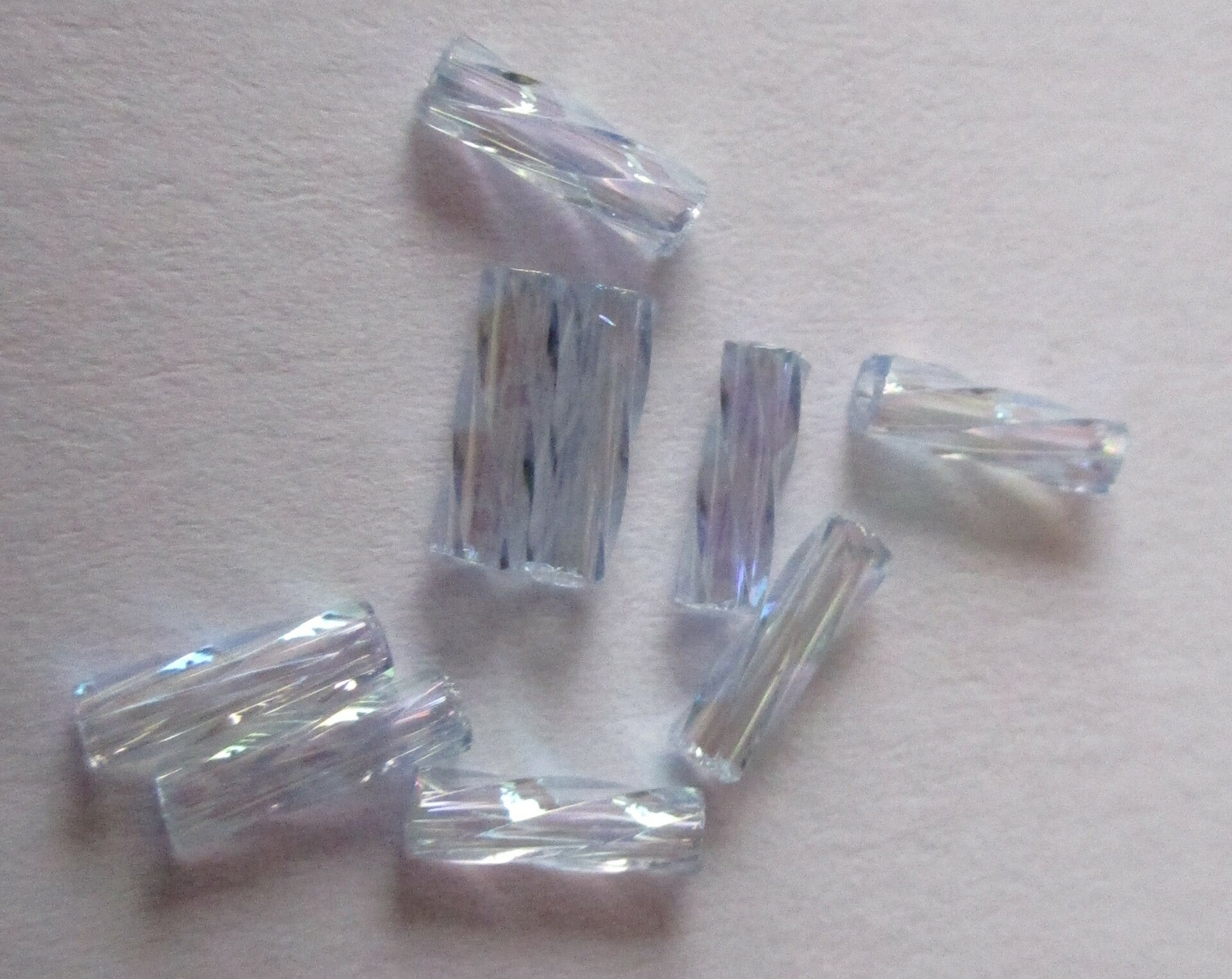 Kleine glazen twisted buisjes kralen lichtblauw. Mooi vorm gegeven glazen kralen die gedraaid lijken te zijn. De kralen hebben een lichte parelmoerglans over zich, waardoor ze wat luxer lijken. Ze zijn 6 x 2 mm groot.
