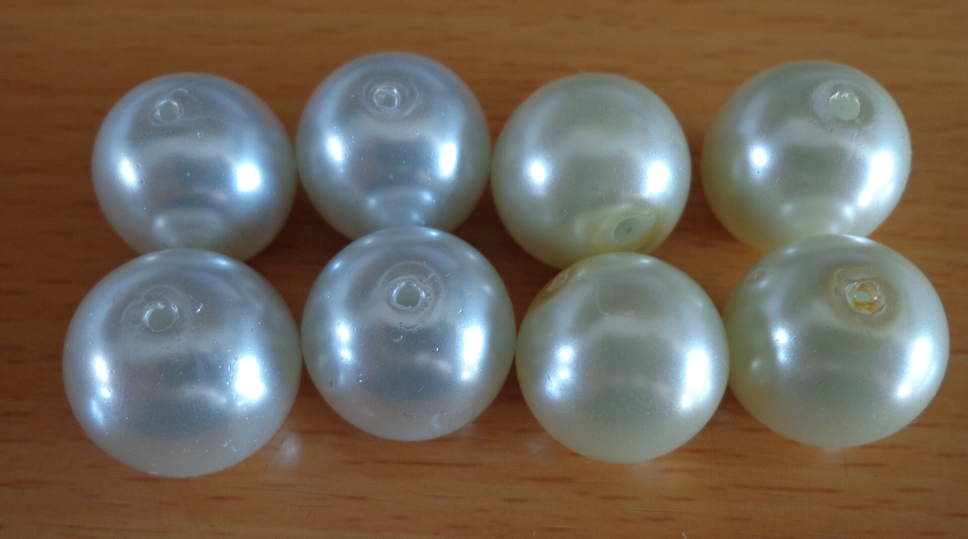 Mooie ivoorkleurige glasparels van 1,4 cm groot. Ze staan heel mooi als detailkraal aan een ketting of armband. Op de tweede foto is het verschil te zien tussen deze witte en de ivoorkleurige glasparels.