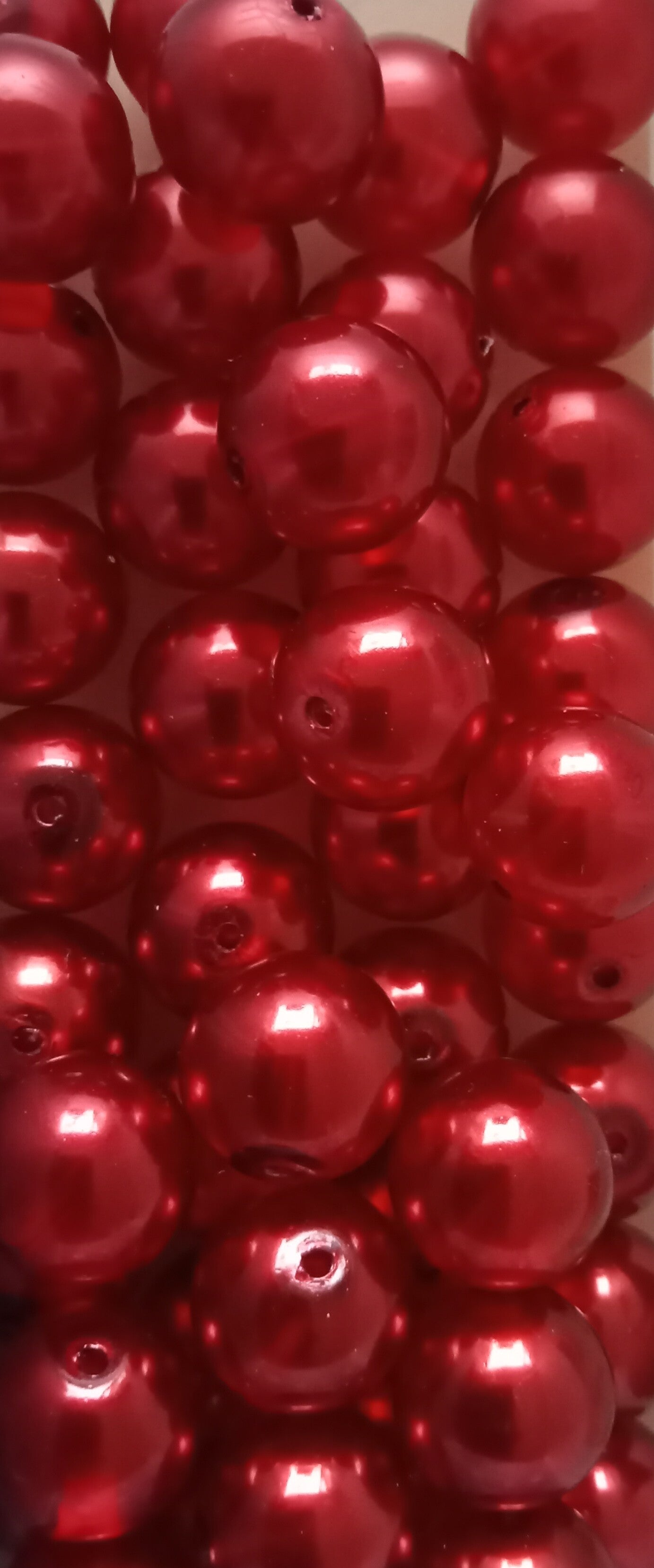 Een mooie rode glasparel van 14 mm groot. De parel staat prachtig in combinatie met zwart, wit, zilver of gouden kralen, maar ook een sieraad met verschillende rode kralen is heel bijzonder en daar zal deze kraal zeker ook bij helpen.