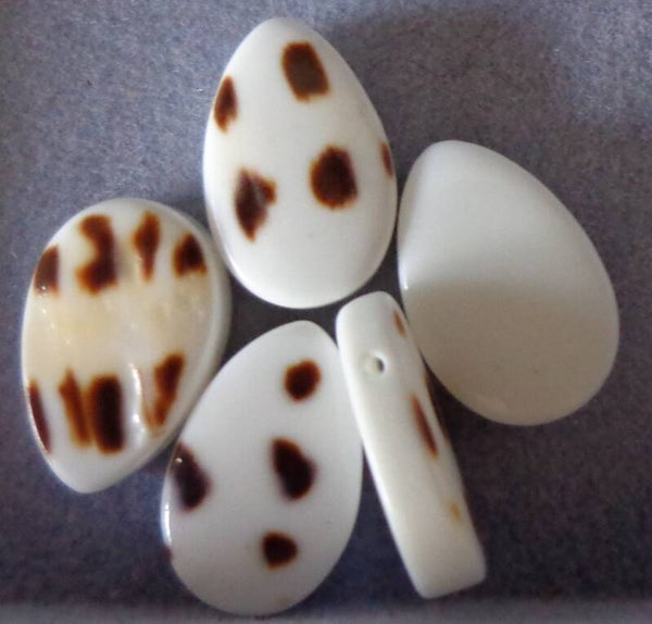 Aparte kralen gemaakt van schelp en 12 x 8 x 4 mm groot. Door de aparte vorm als druppels zijn ze echte blikvangers aan uw eigen sieraad.