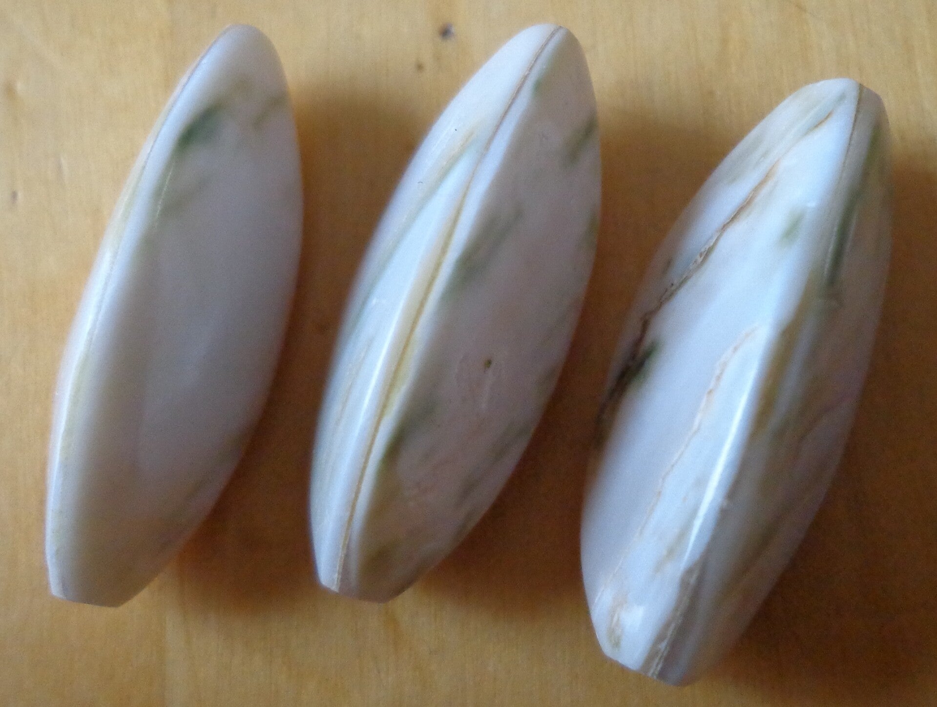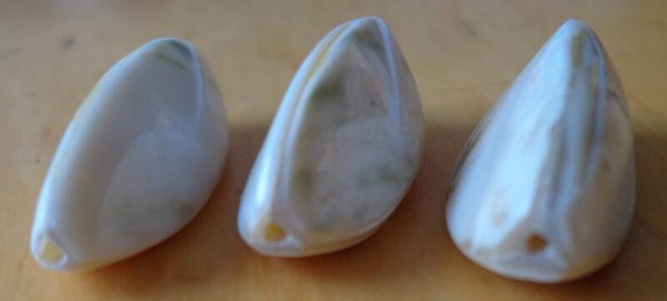 Heel aparte kralen gemaakt van troca schelp. Deze kralen zijn een prachtig detail aan een heel eenvoudige ketting.
