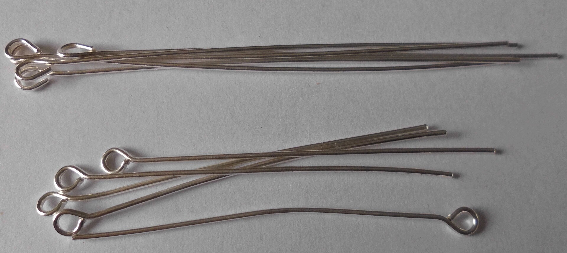 Echt zilveren (925) kettel of oogstiften in drie maten: 2,5 cm, 4,5 en 6 cm groot. Prijs per stift. De stiften van 2,5 cm kosten € 0,30, de andere 2 maten zijn € 0,20 duurder per stift.