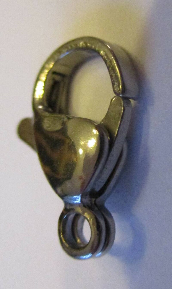 Een platina plated karabijnslot van 12 x 7 mm groot. Het platina wordt meestal door mensen met een metaal allergie beter verdragen dan alleen nikkelvrij metaal.