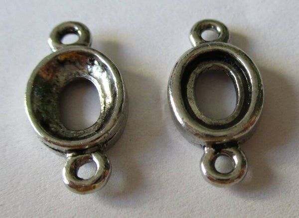 Een klein tussenzetsel mooi voor een plaksteen met een bolle achterkant. Het tussenzetsel is 16 x 9 mm groot aan de buitenkant, inclusief oogjes. De binnenkant is 9 x 7 mm groot. Leuk om een armbandje van een bijzonder detail te voorzien.