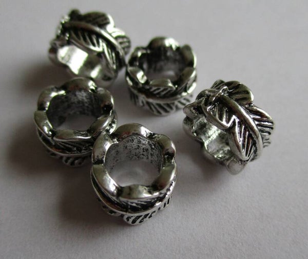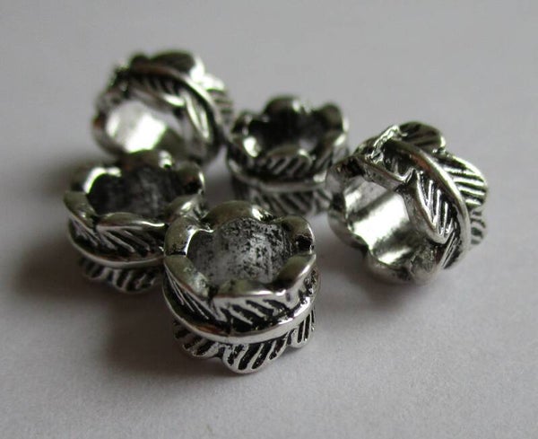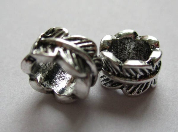 Bijzonder vormgegeven groot gat style kralen. De kralen lijken op een kransje van kleine blaadjes. Ze zijn 8 x 5 mm groot, het rijggat is 5 mm breed.