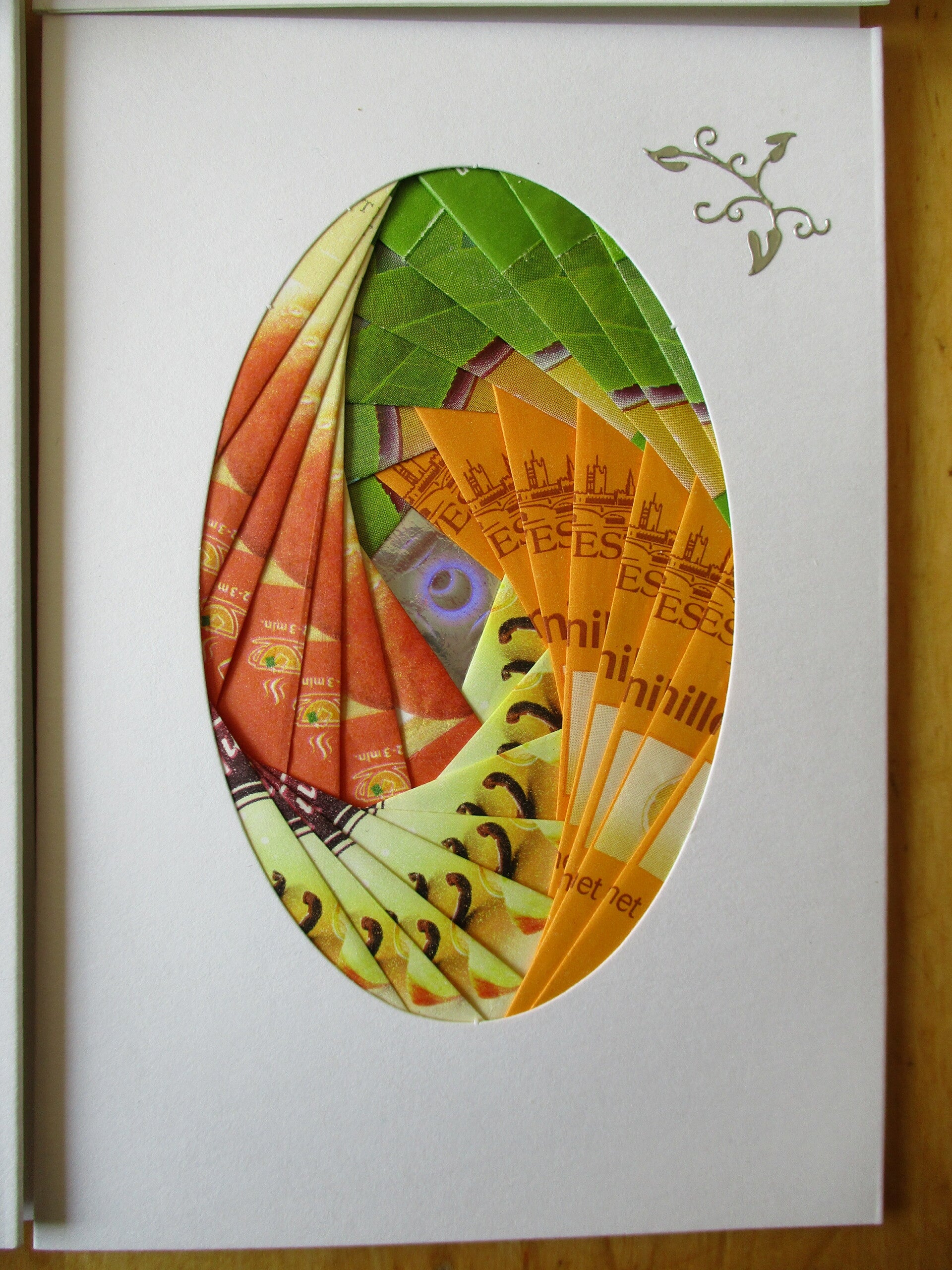 Stuur eens een andere kaart dan anders... Dit kan met een wenskaart gemaakt met de techniek die irisvouwen heet. Wij maken ze met theezakjes, zo gebruiken we minder nieuw papier.